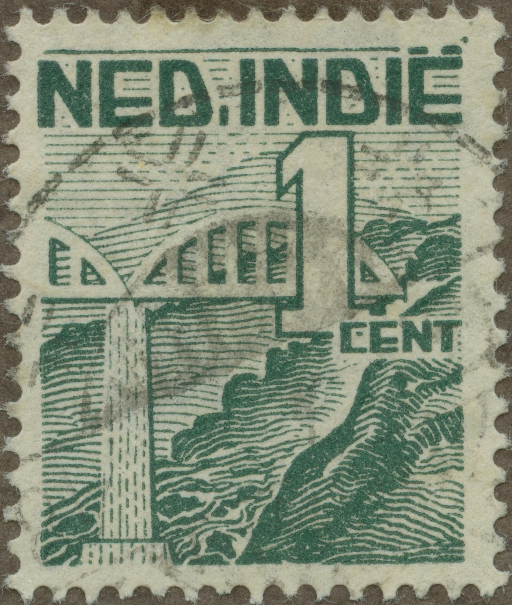 Frimärke från Nederländska Indien, 1946. Motiv av Stor högbro