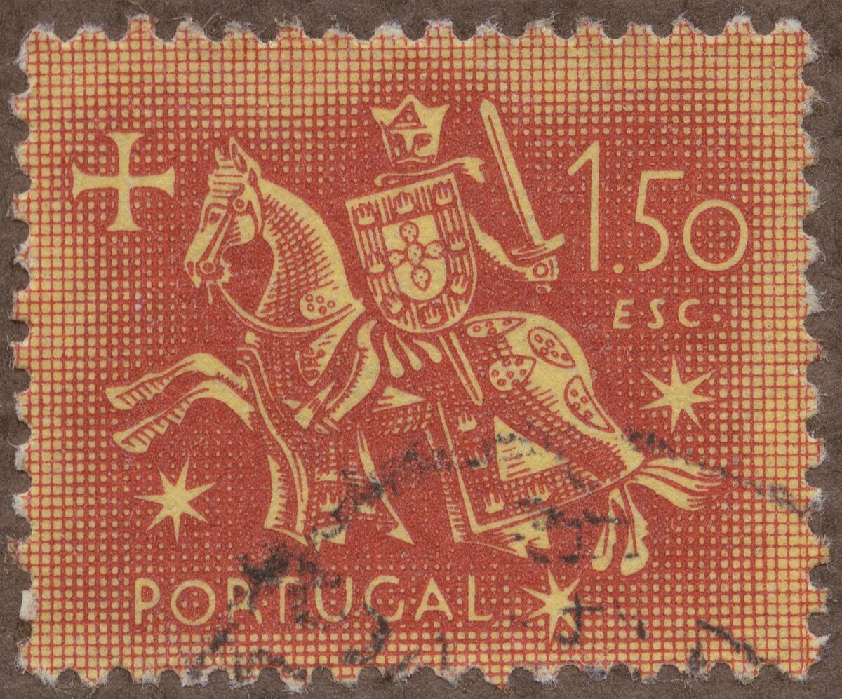Frimärke från Portugal, 1952. Motiv av Riddare med sköld och svärd: Kung Diniz:s sigill.