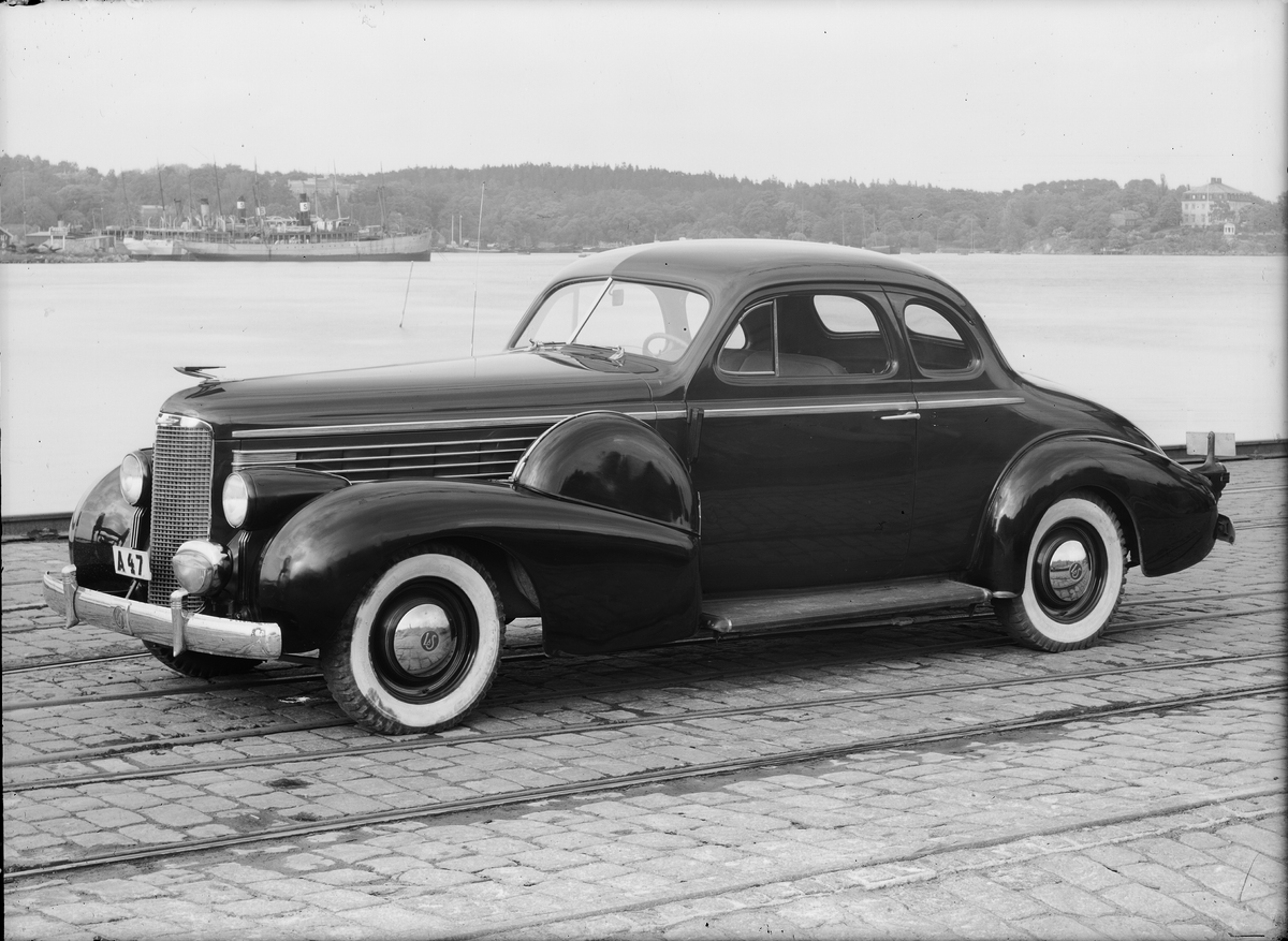 Titel: Herr af Forselles bil, LaSalle. LaSalle var ett amerikanskt bilmärke som tillverkades av General Motors i Detroit, Michigan mellan 1927 och 1940. Bilden är tagen från stadsgården (stadsgårdskajen). Längst till höger i bilden skymtar vi Prins Eugens Waldemarsudde.