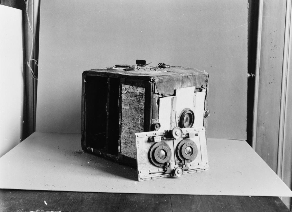 Fotografiapparat (kamera) Stereoskopobjektiv till kameran var: 2 st obj. monterade på ett löst obj.-bräde. Stämplat "AÉES-PXP-1896". Obj. voro märkta "C.P. Goerz", Berlin, Doppel Anastigmat. D.R.P. nr 24046. Serie III/0 F. 120 m/m.