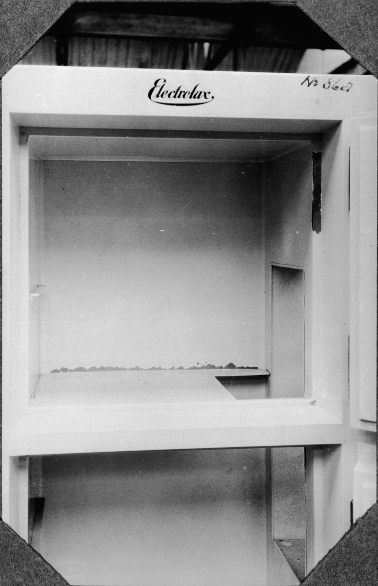 Kylskåp, öppet och skadat. Fotografier från Electrolux Ltd London enl. brev av den ??.