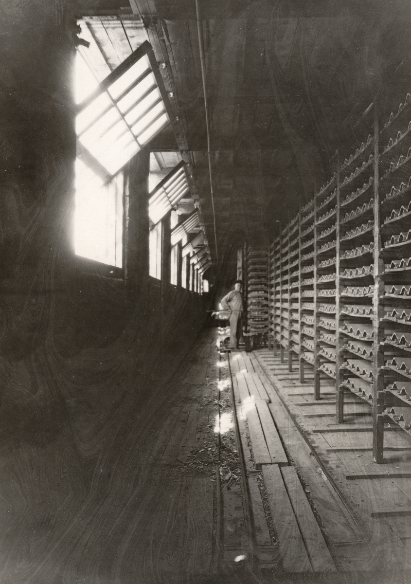 Vrena Tegelbruk. Interiör från en av torkvindarna.
