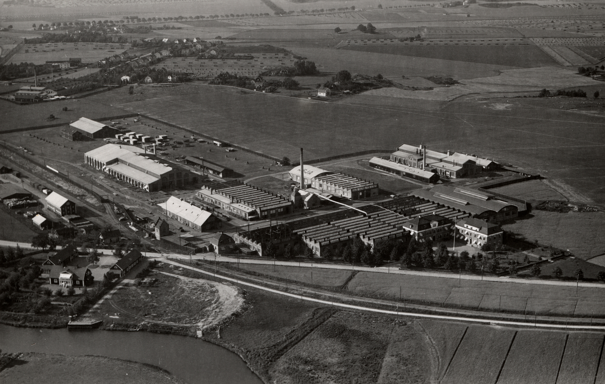 Flygfotografi över AB Svenska Järnvägsverkstäder i Tannefors.