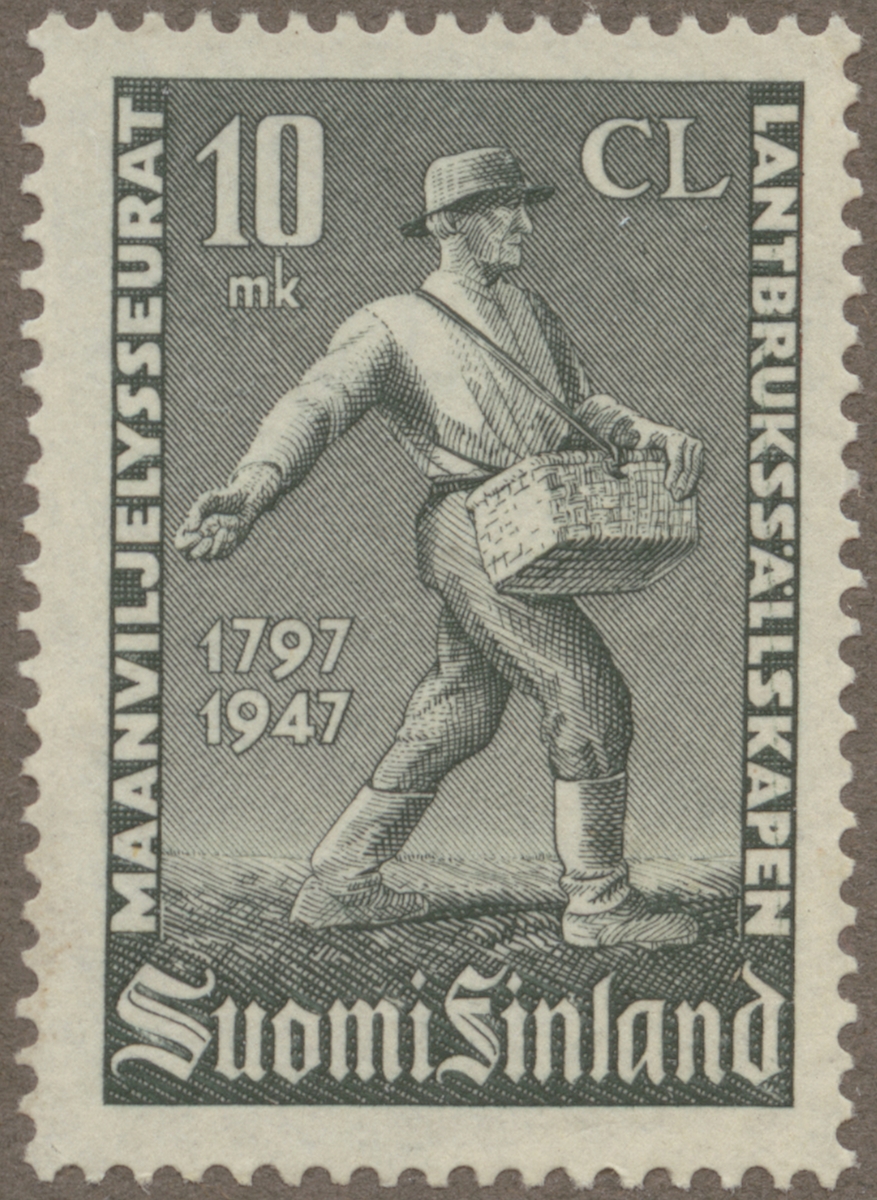 Frimärke från Finland, 1947. Motiv av Finsk såningsman. 150-årsminne av Lantbrukssällskapet. 1797-1947.