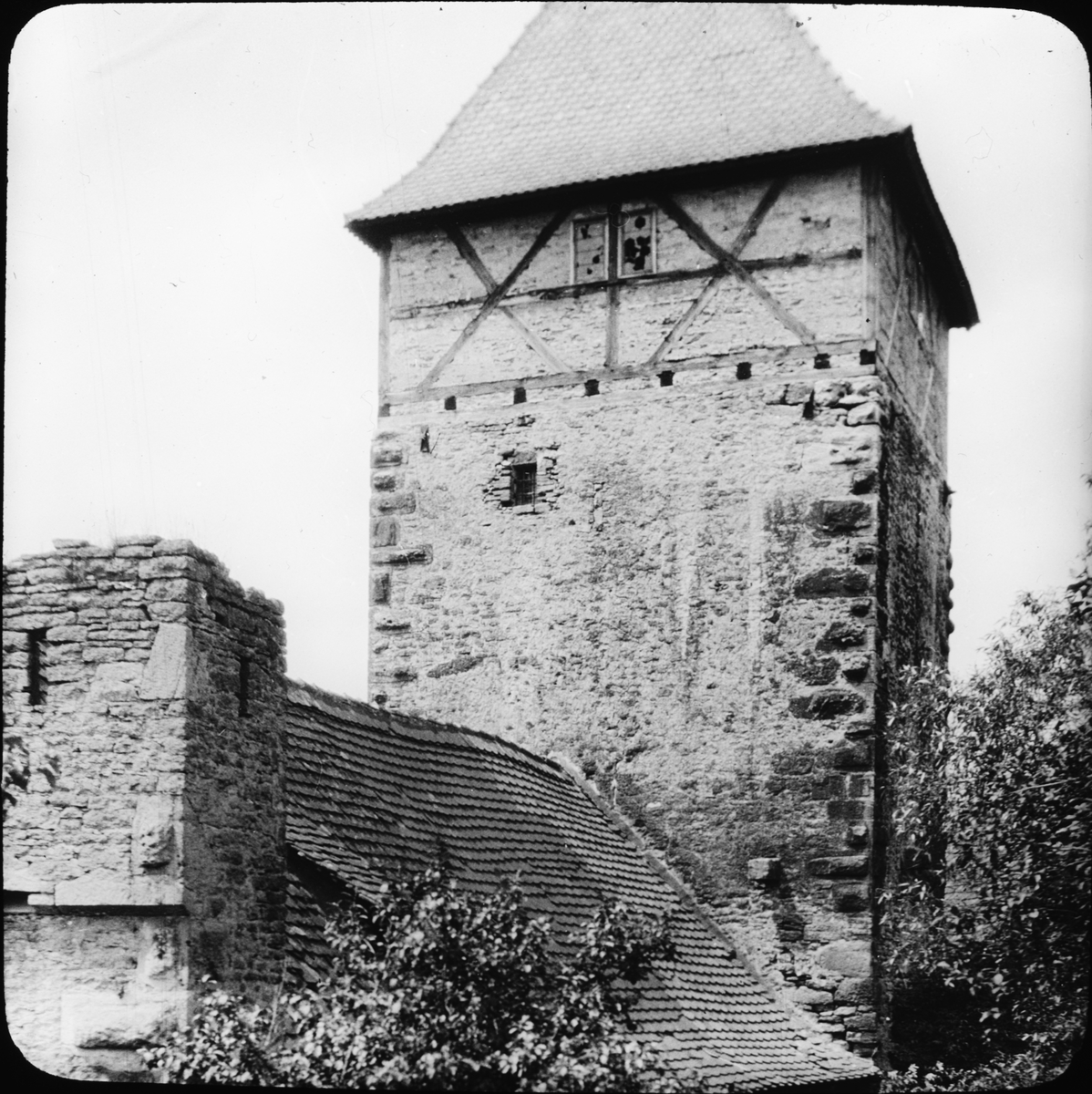 Skioptikonbild med motiv från Iphofen. Möjligen Mittagsturm.