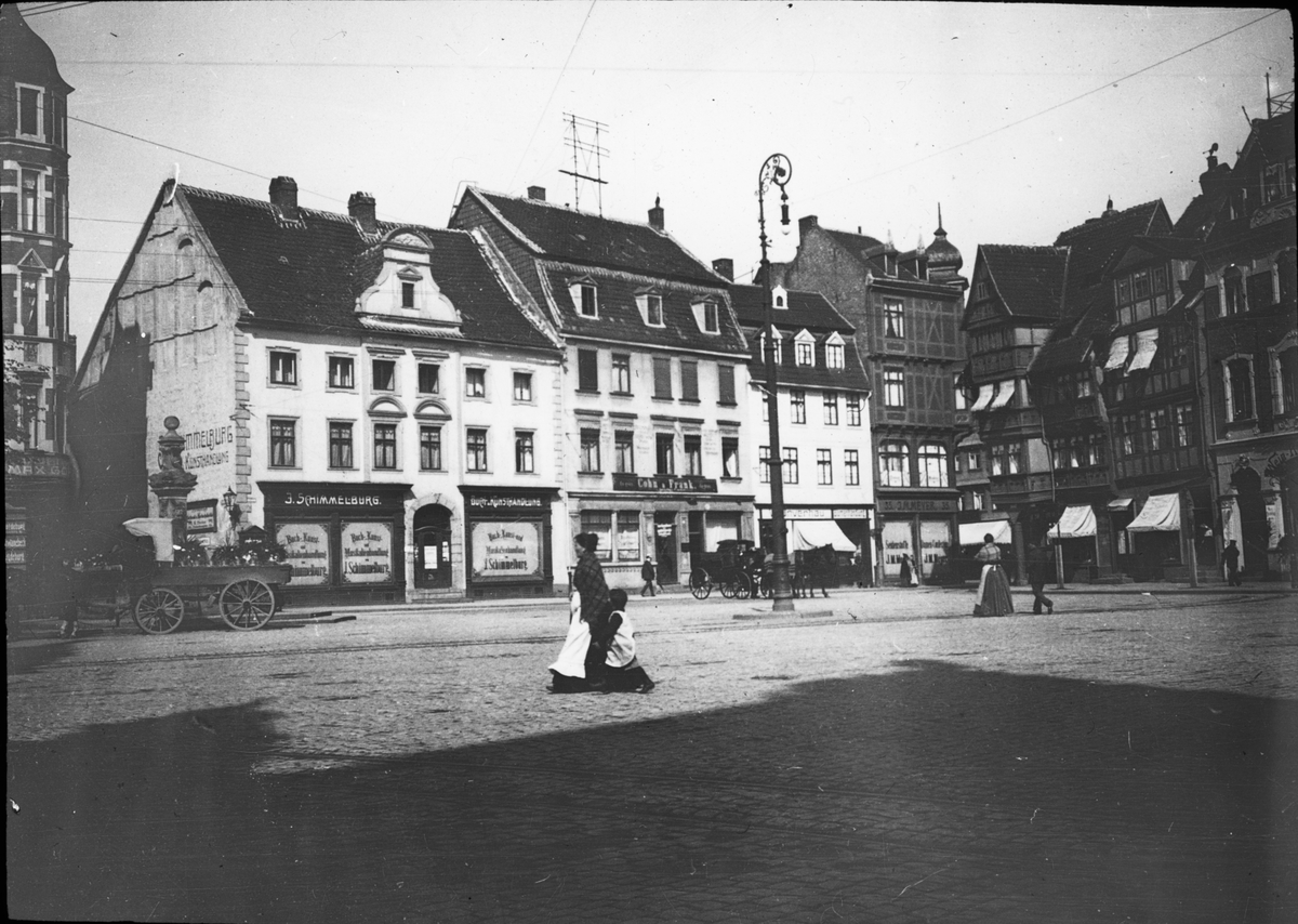 Skioptikonbild med motiv av torget Holzmarkt i Halberstadt.
