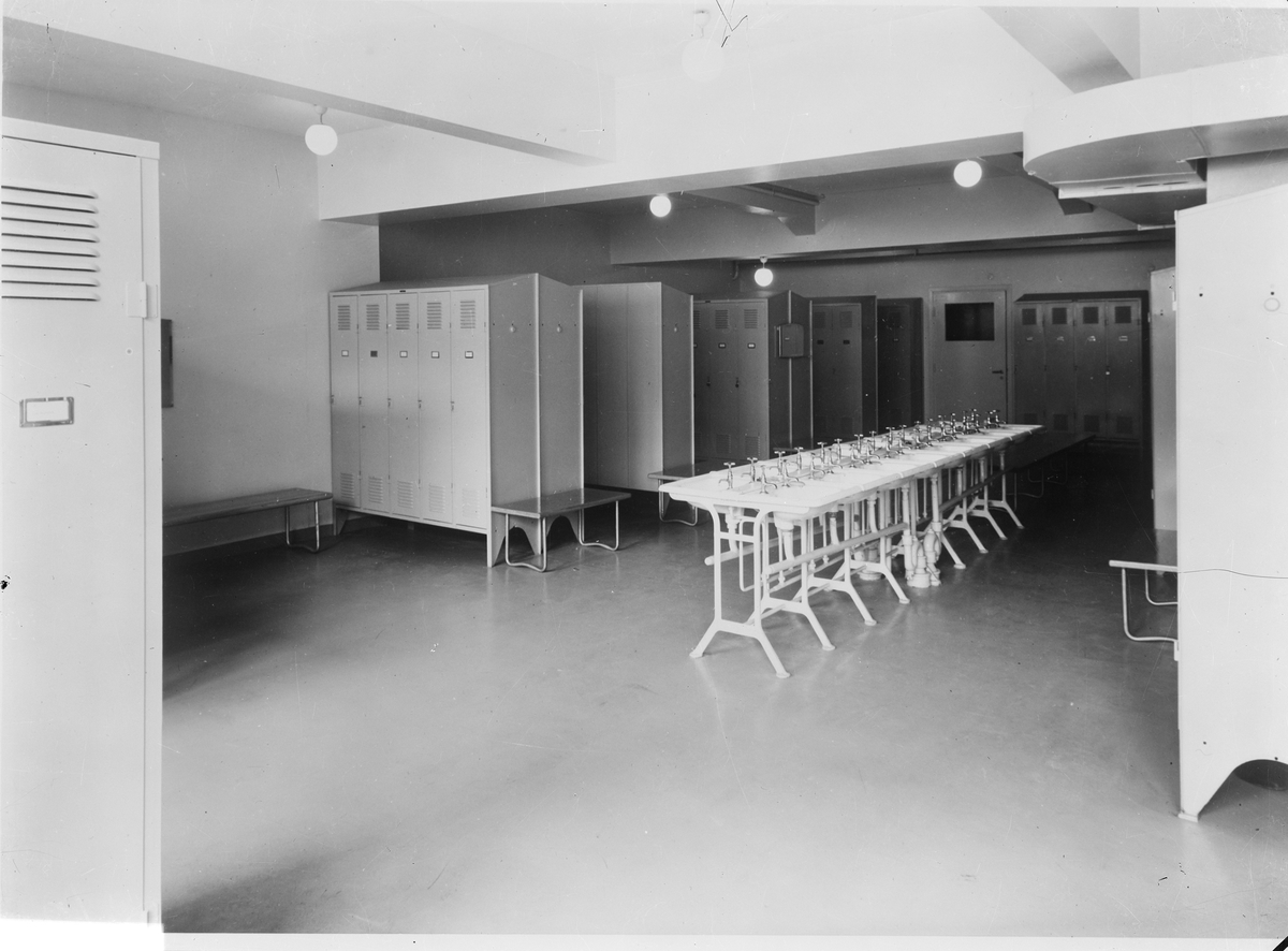 Fotografi från Arbetarskyddsstyrelsens arbetsplatsdokumentationer. Omklädningsrum.