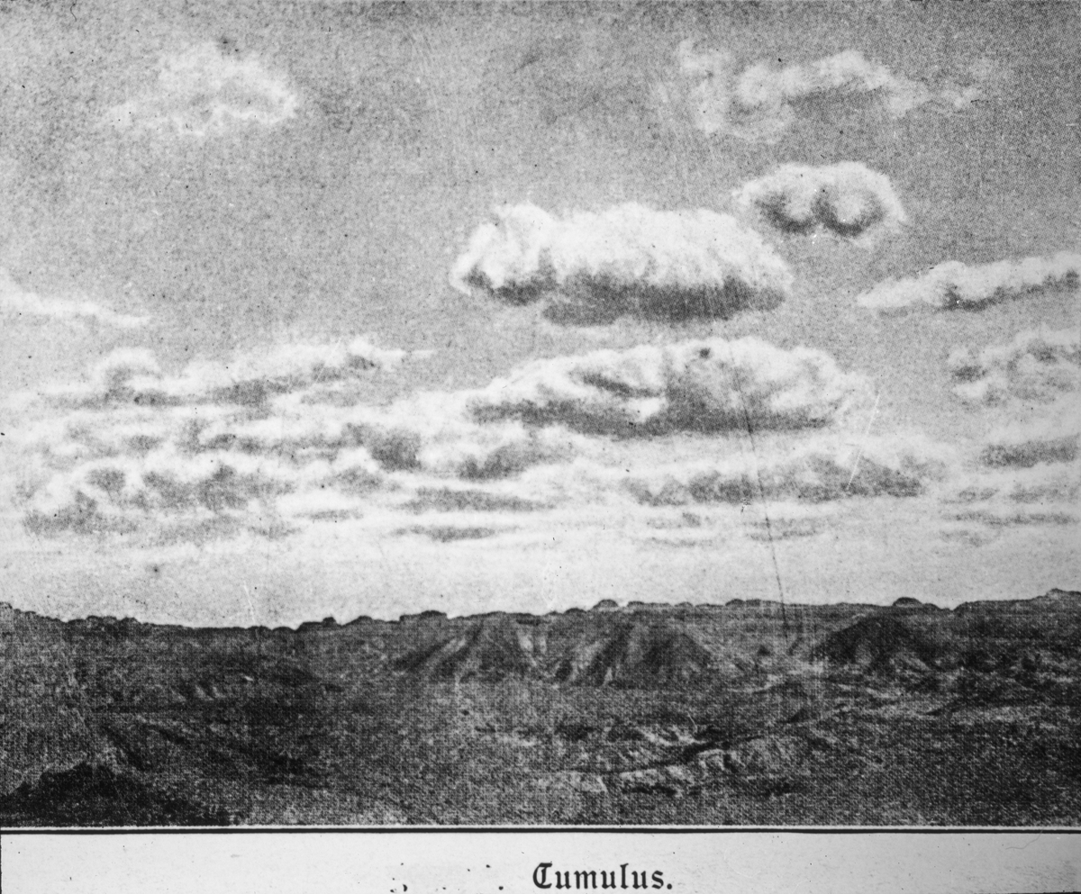 Skioptikonbild med motiv rörande olika typer av moln. Cumulus.