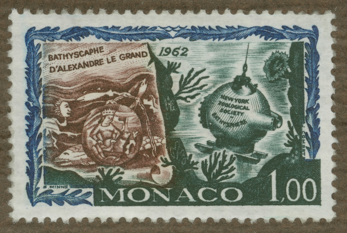 Frimärke från Monaco, 1962. "Havsforskningsserie".