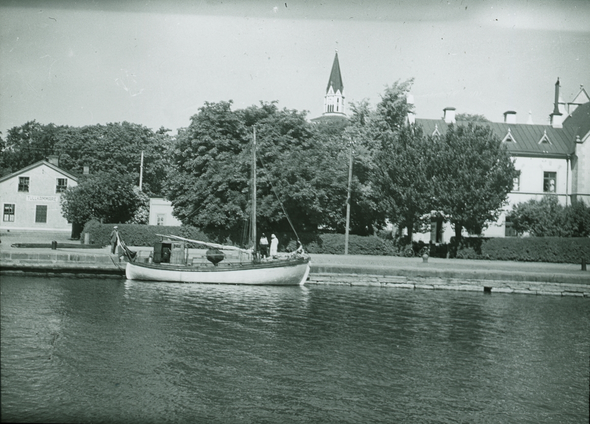 Fotografi från expedition till Spetsbergen 1920. Motiv av båt som lagt till vid kaj i Sverige.