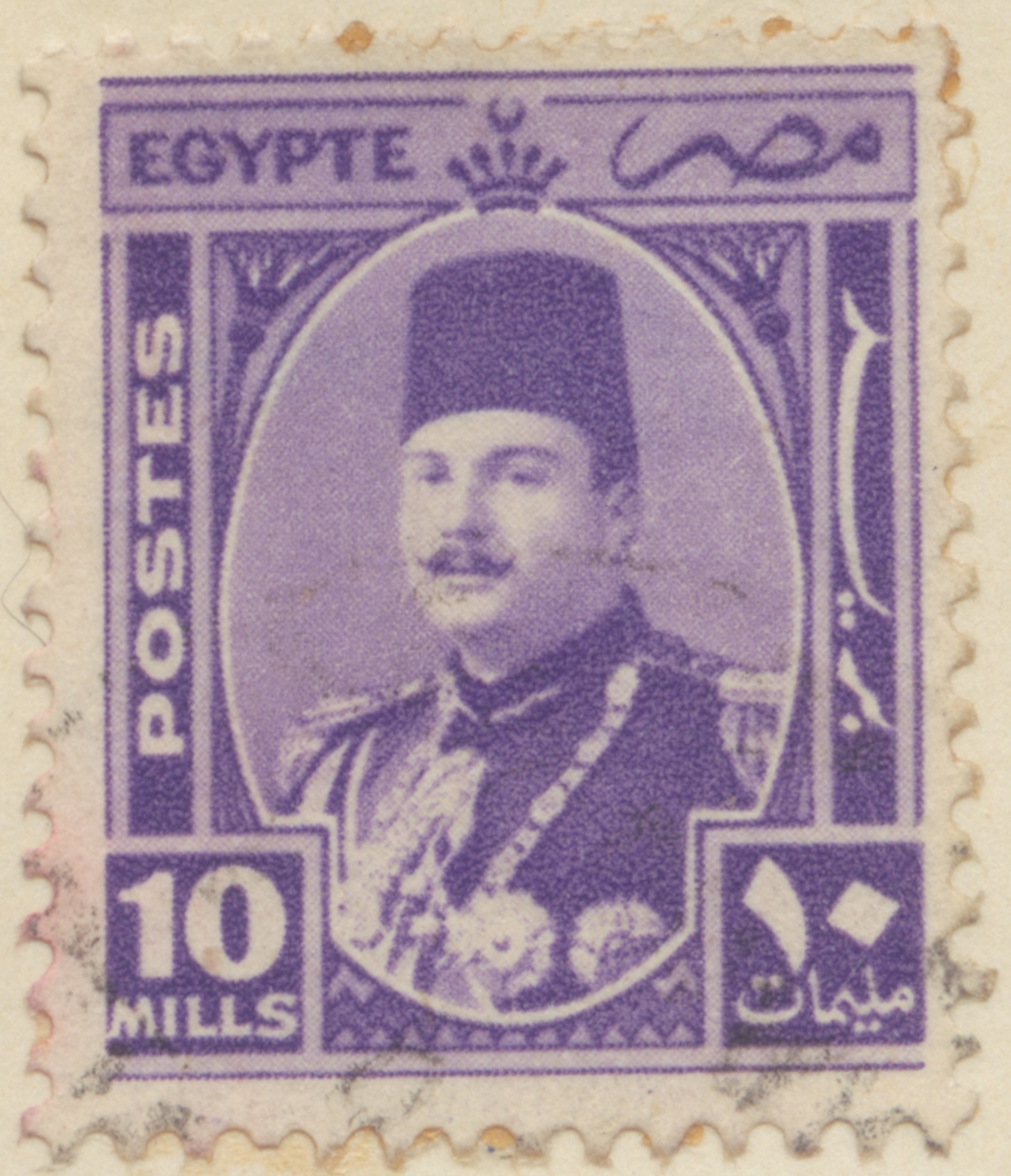 Frimärke från Egypten, 1944. Motiv av Krona -Kung Farouk av Egypten-