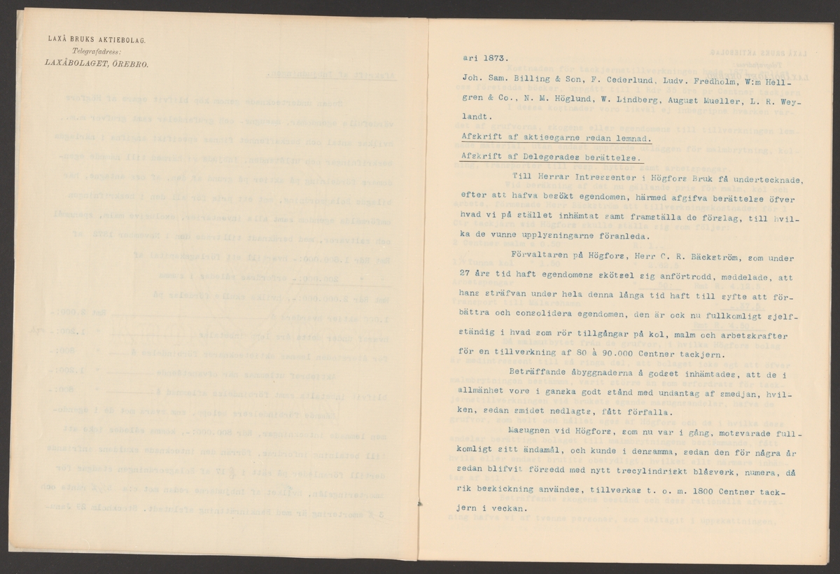 Högfors bruks kronologi.