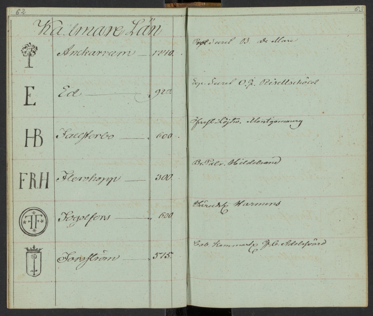 Svenska Stångjärns- och manufakturverkens smidesrätt, stämplar och ägare år 1832.