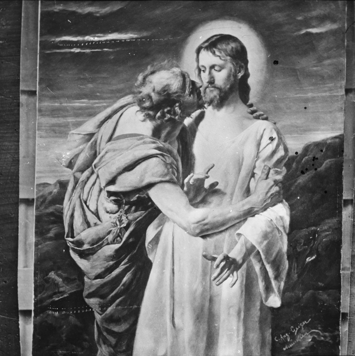 Skioptikonbild. Fotografi av konstverk. Religiöst motiv.
