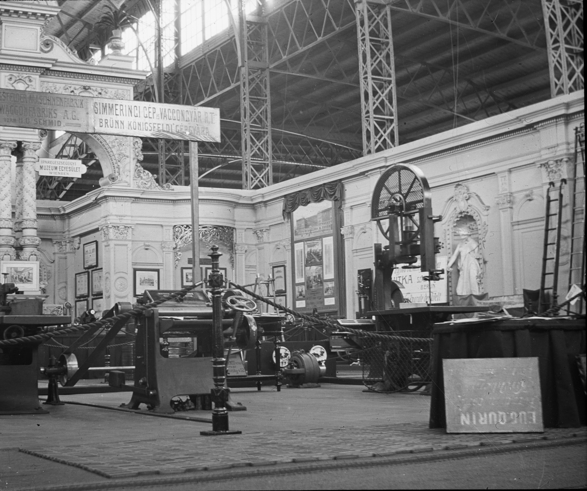 Skioptikonbild med motiv från yrkesinspektionens undersökningar på olika arbetsplatser. Okänd utställning.