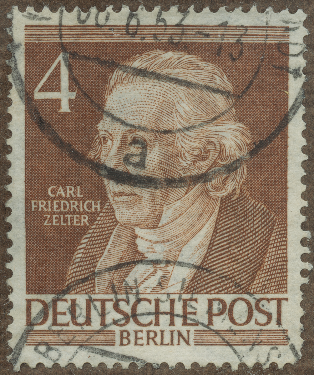 Frimärke från Tyskland, 1952. Motiv av Carl Friederich Zelter 1758-1832 Tysk Kompositör. Professor