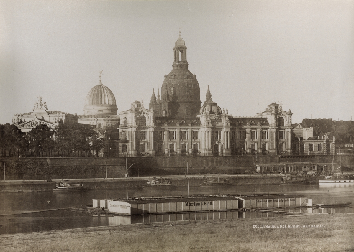 Kungliga Konstakademien, Dresden. Kanalbåtar på floden Elbe.