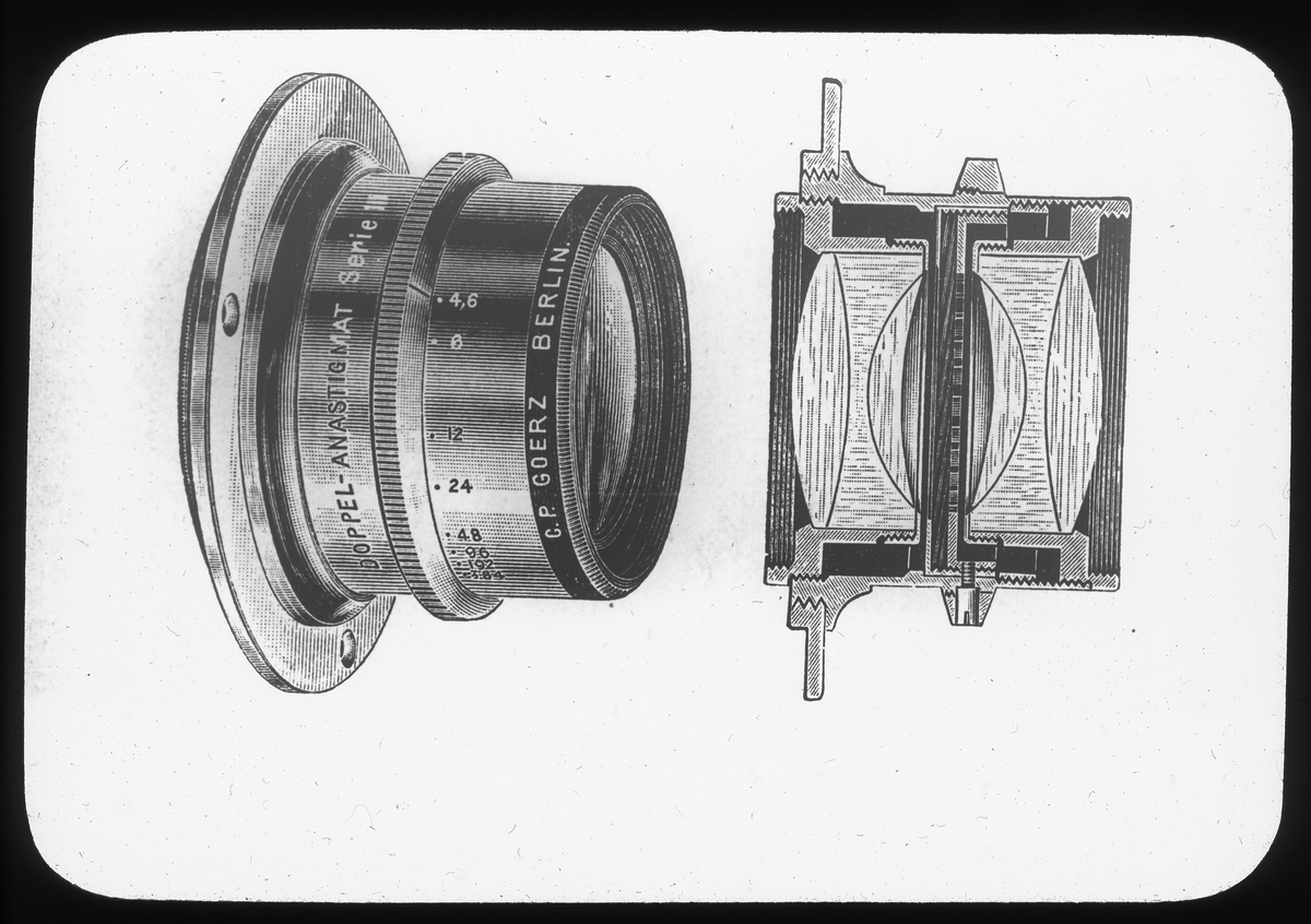 Skioptikonbild från Institutionen för fotografi vid Kungliga Tekniska Högskolan. Använd av professor Helmer Bäckström som föreläsningsmaterial. Bäckström var Sveriges första professor i fotografi vid Kungliga Tekniska Högskolan i Stockholm 1948-1958.