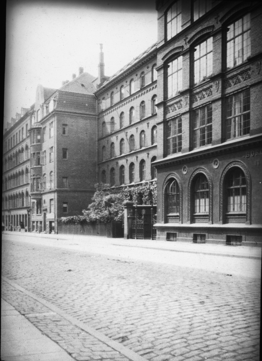 Skioptikonbild med motiv från gata i Köpenhamn.