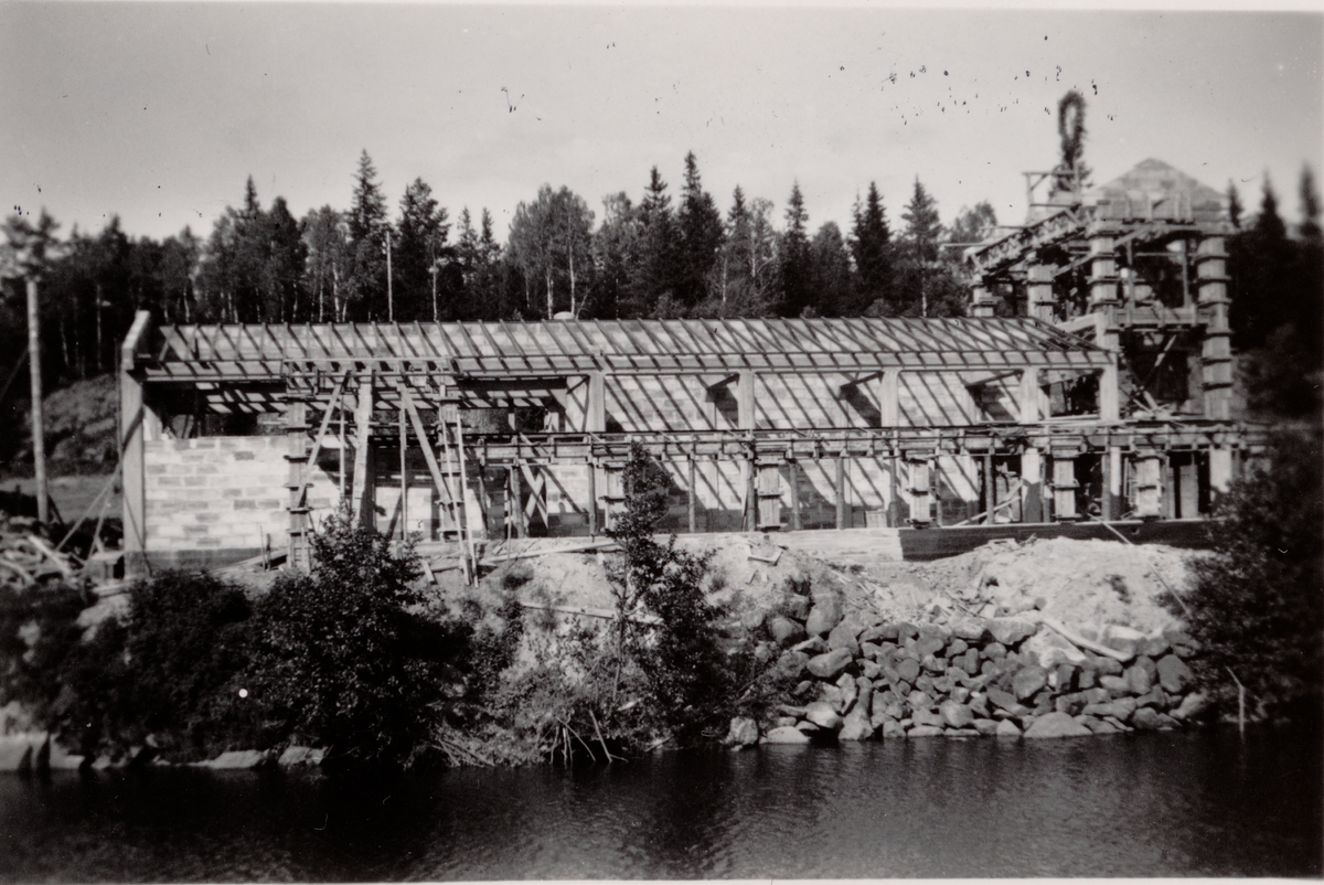 Carlfors Aktiebolag. Uppbyggnad av nyabruket efter gamla brukets brand 1931.