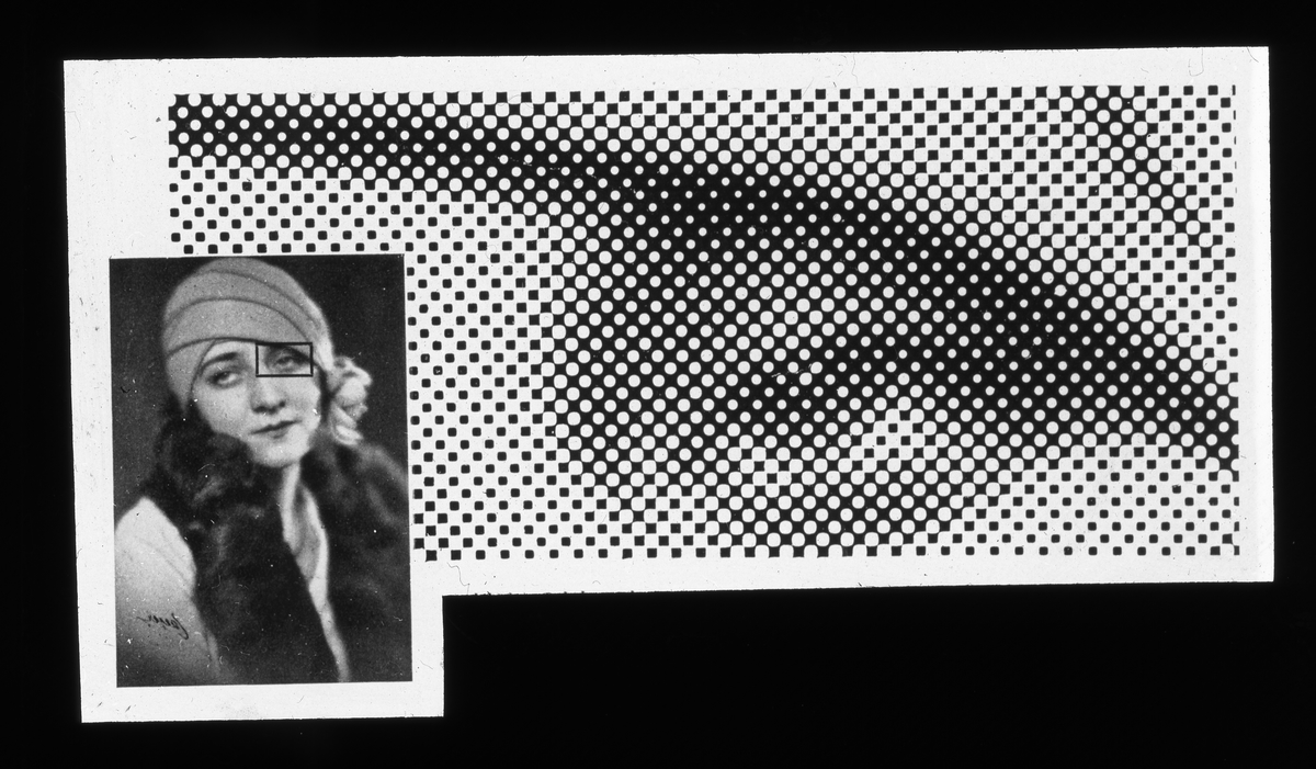 Skioptikonbild från Institutionen för fotografi vid Kungliga Tekniska Högskolan. Använd av professor Helmer Bäckström som föreläsningsmaterial. Bäckström var Sveriges första professor i fotografi vid Kungliga Tekniska Högskolan i Stockholm 1948-1958.
