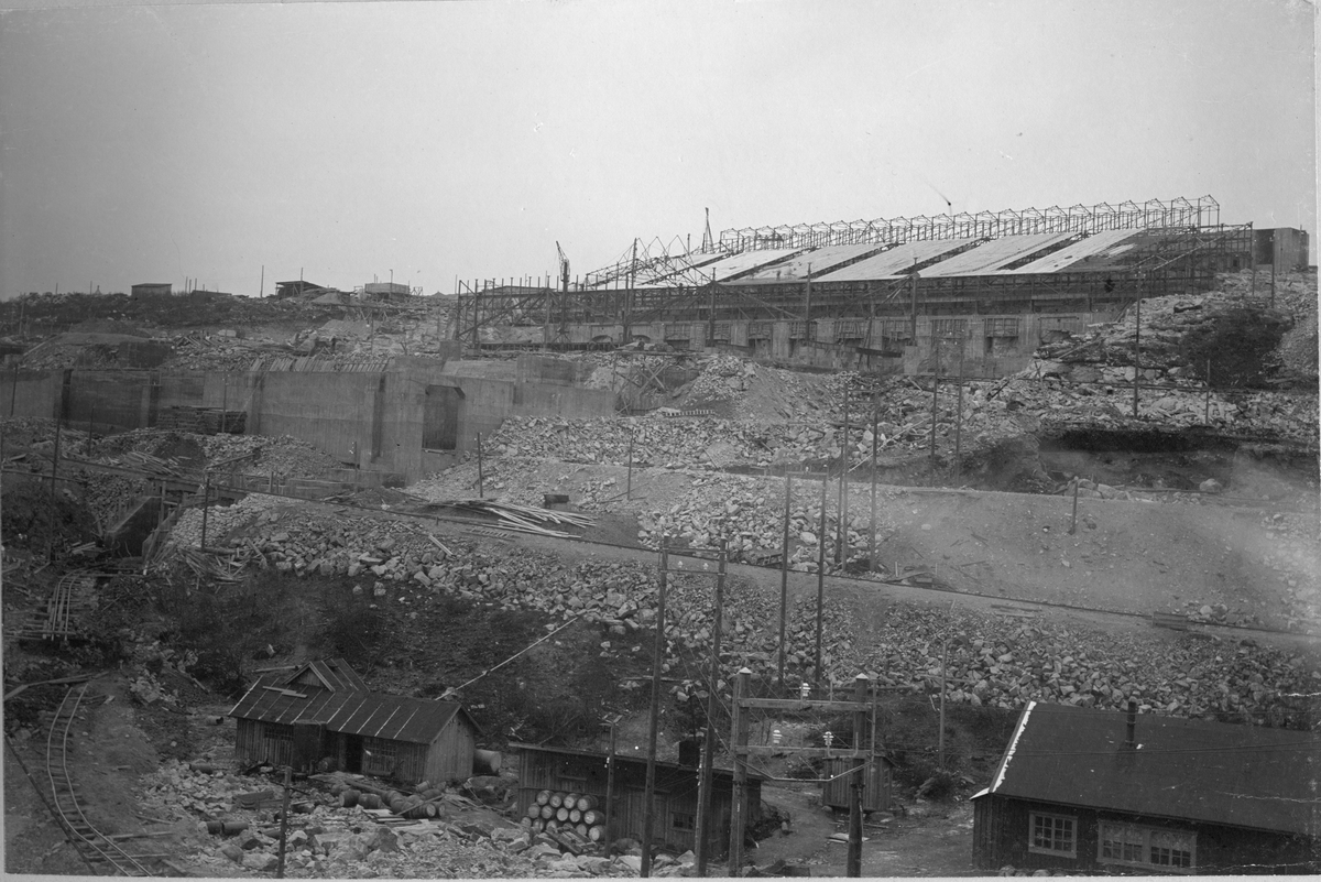 Det halvfärdiga separationsverket i Kirkenes, Norge. Fotografiet ingår i ett album från AB de Lavals Ångturbin, 1909. "The Power Station of Aktieselkabet Sydvaranger i Kirkenes".