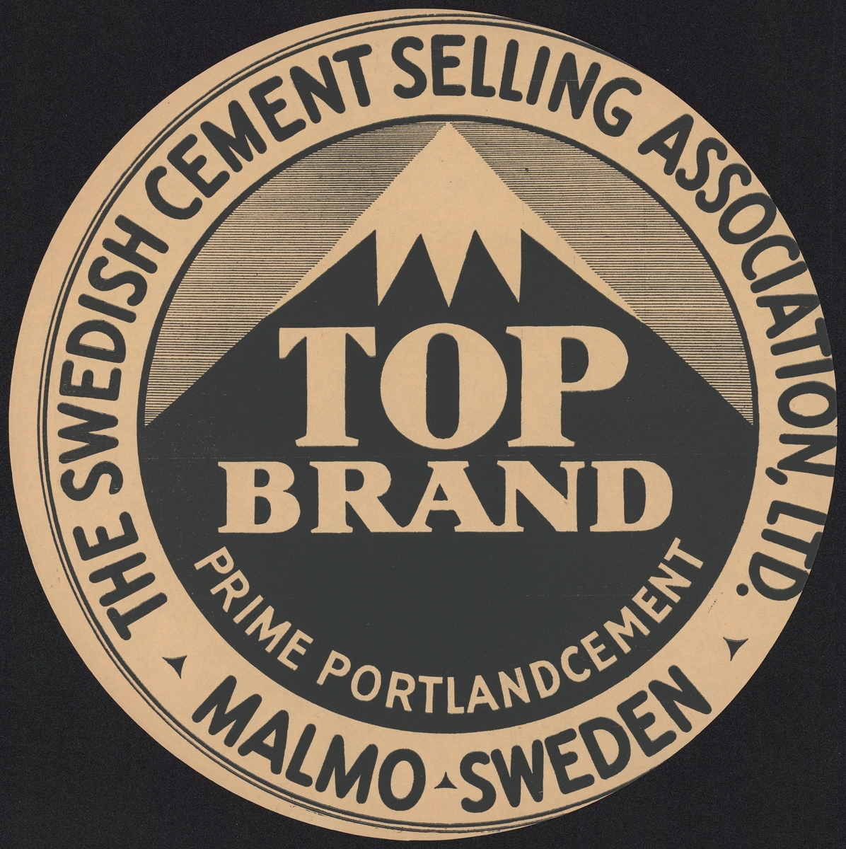 Fabriksmärke för cementpåsar. The Swedish Cement Selling Association Ldt. Prime Portland Cement.