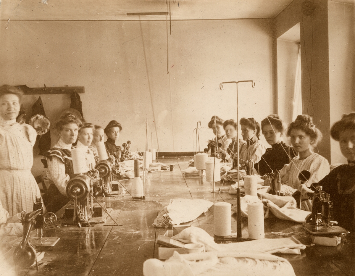 Sömmerskor vid C.K. Schenholm & Son, Kristianstad. Foto ca 1906.