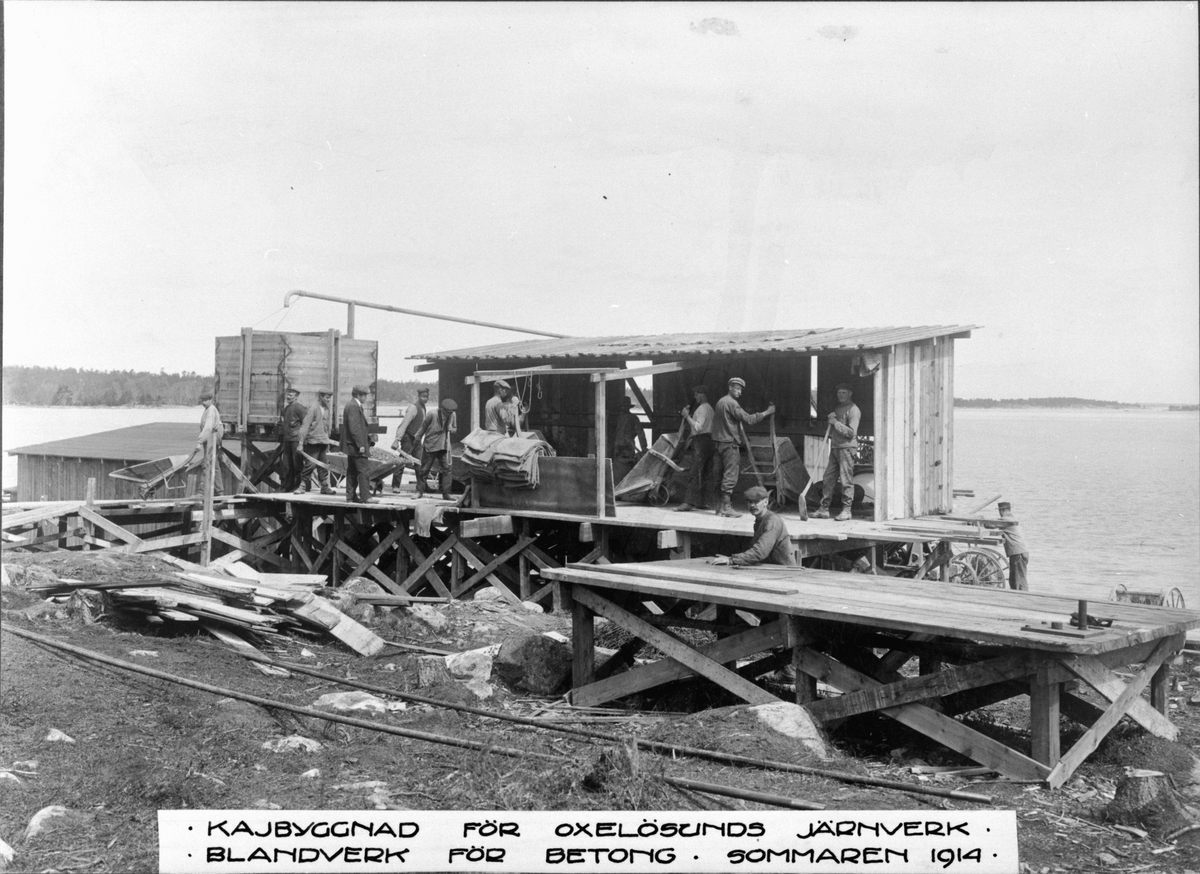 Byggherre Byggnadsaktiebolaget Contractor, Stockholm. Kajbyggnad. Blandverk för betong, sommaren 1914.