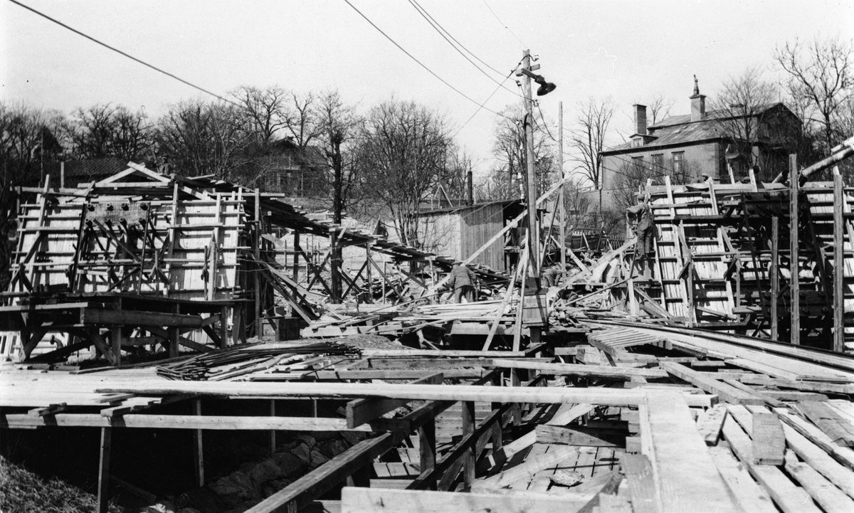 Byggherre: Byggnadsaktiebolaget Contractor, Stockholm. Gjutning av landfästets överdel.