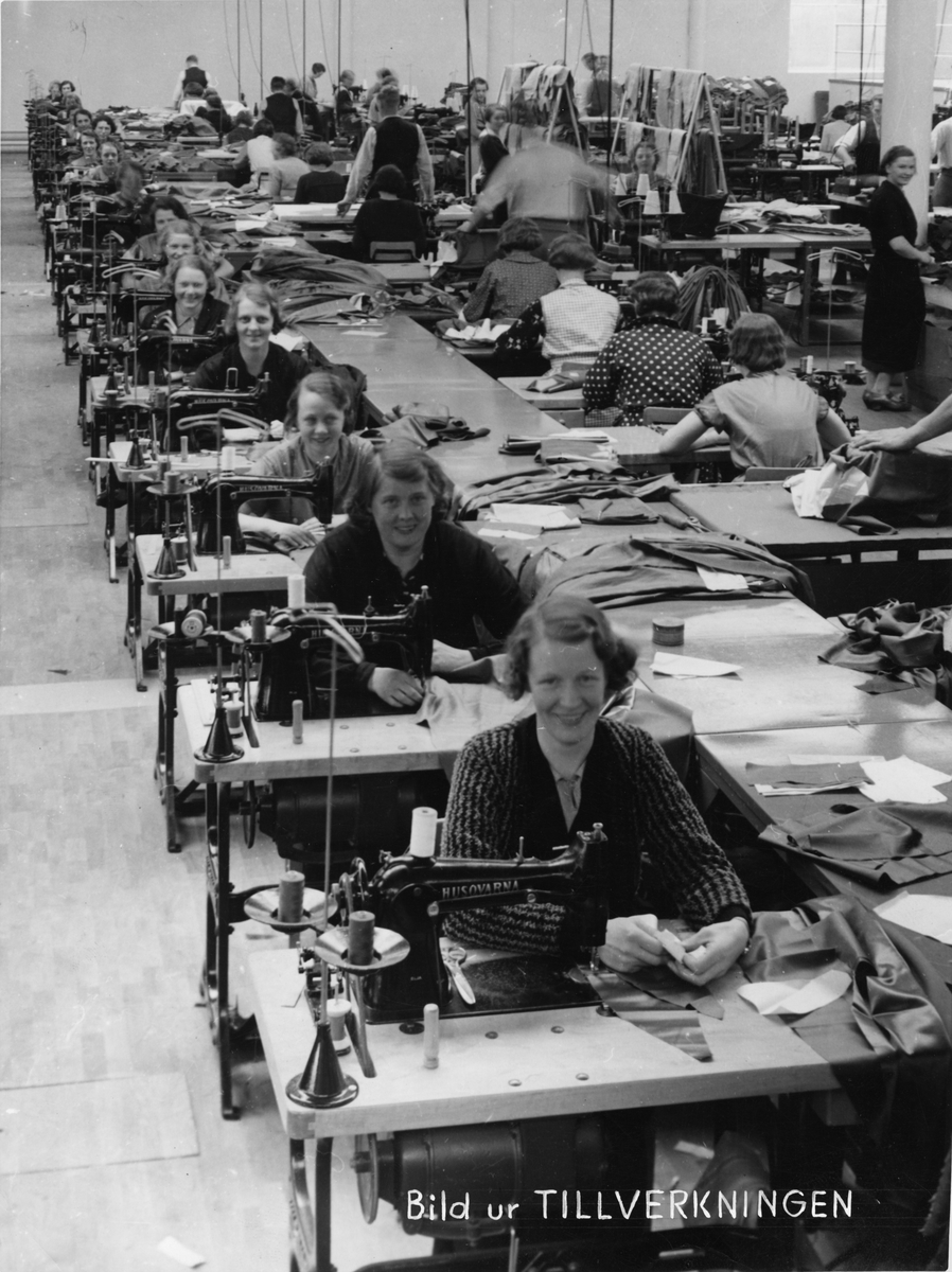Konfektionsbolaget Junex. Tillverkningen. "En rad glada syflickor".