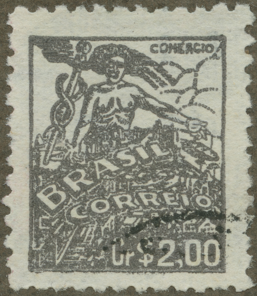 Frimärke ur Gösta Bodmans filatelistiska motivsamling, påbörjad 1950. Frimärke från Brasilien, 1941. "Symbol för handel"