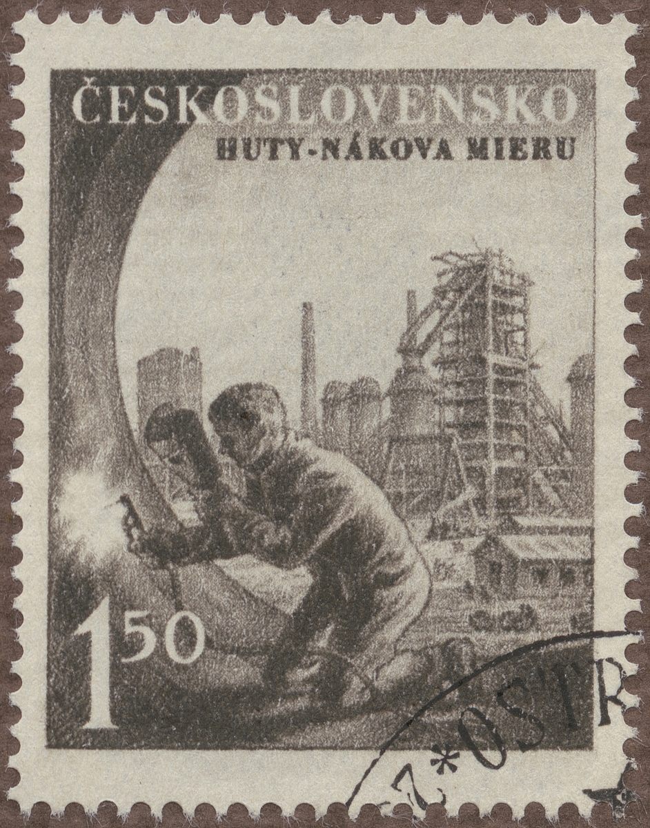 Frimärke från Tjeckoslovakien, 1952. Motiv av Svetsningsarbetare i Klement Gottwald Järnverk