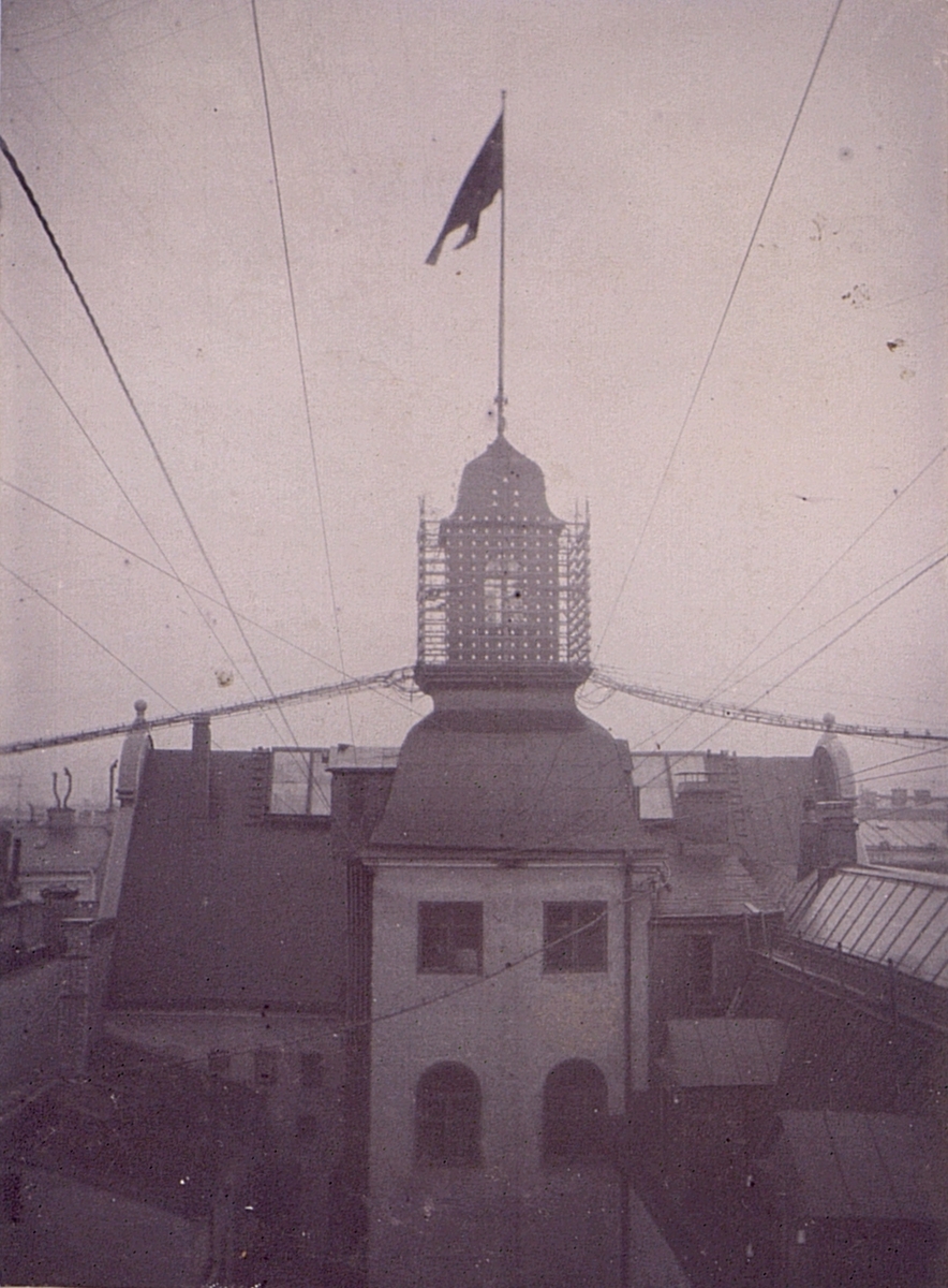 Västra Sverige telefonnät omkr. 1900. Troligen telefonstation och telefontorn.