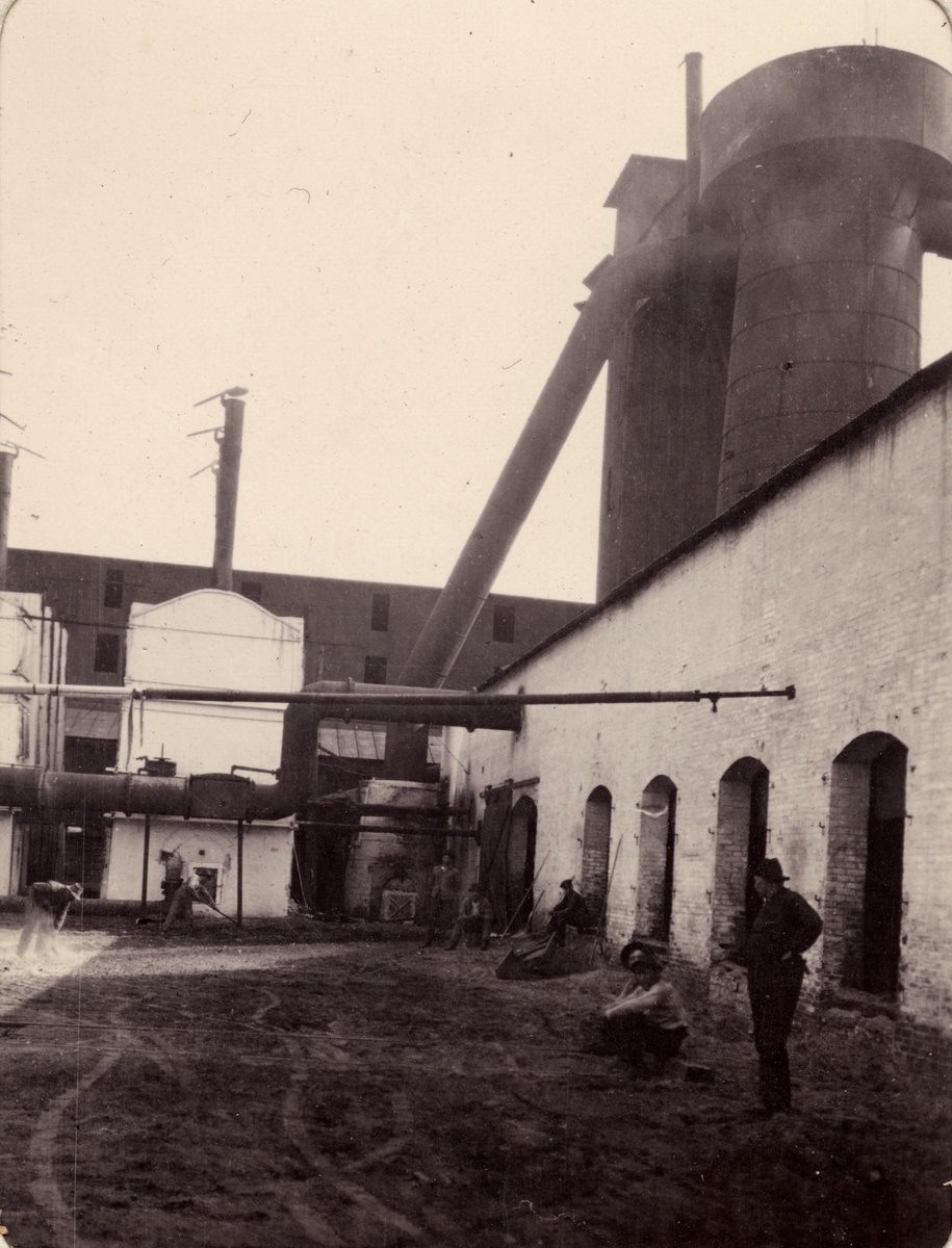 Träkolshytta i Michigan. T. v. varmapparaten. Ur album Fotografier från amerikanska Träkolshyttor 1905/1906.