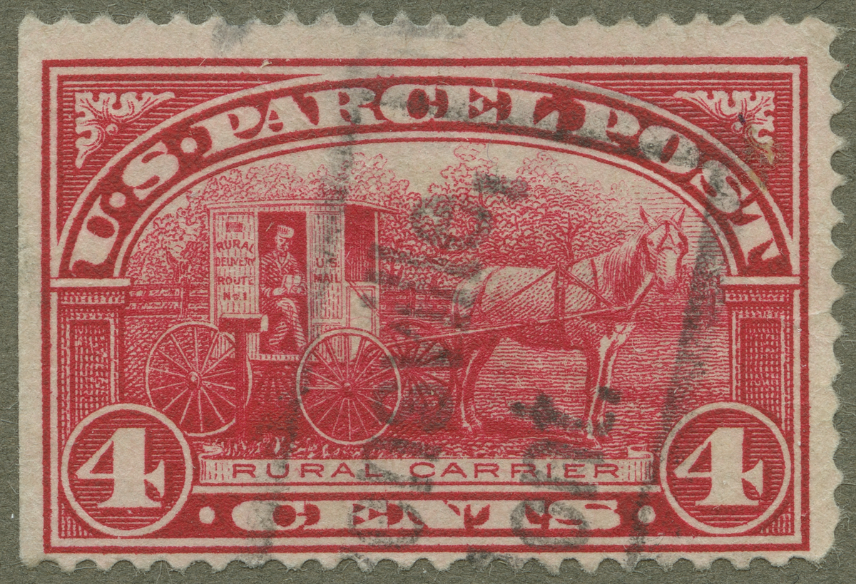 Frimärke från USA, 1912. Motiv av Amerikansk paketskjuts på landsbygden.