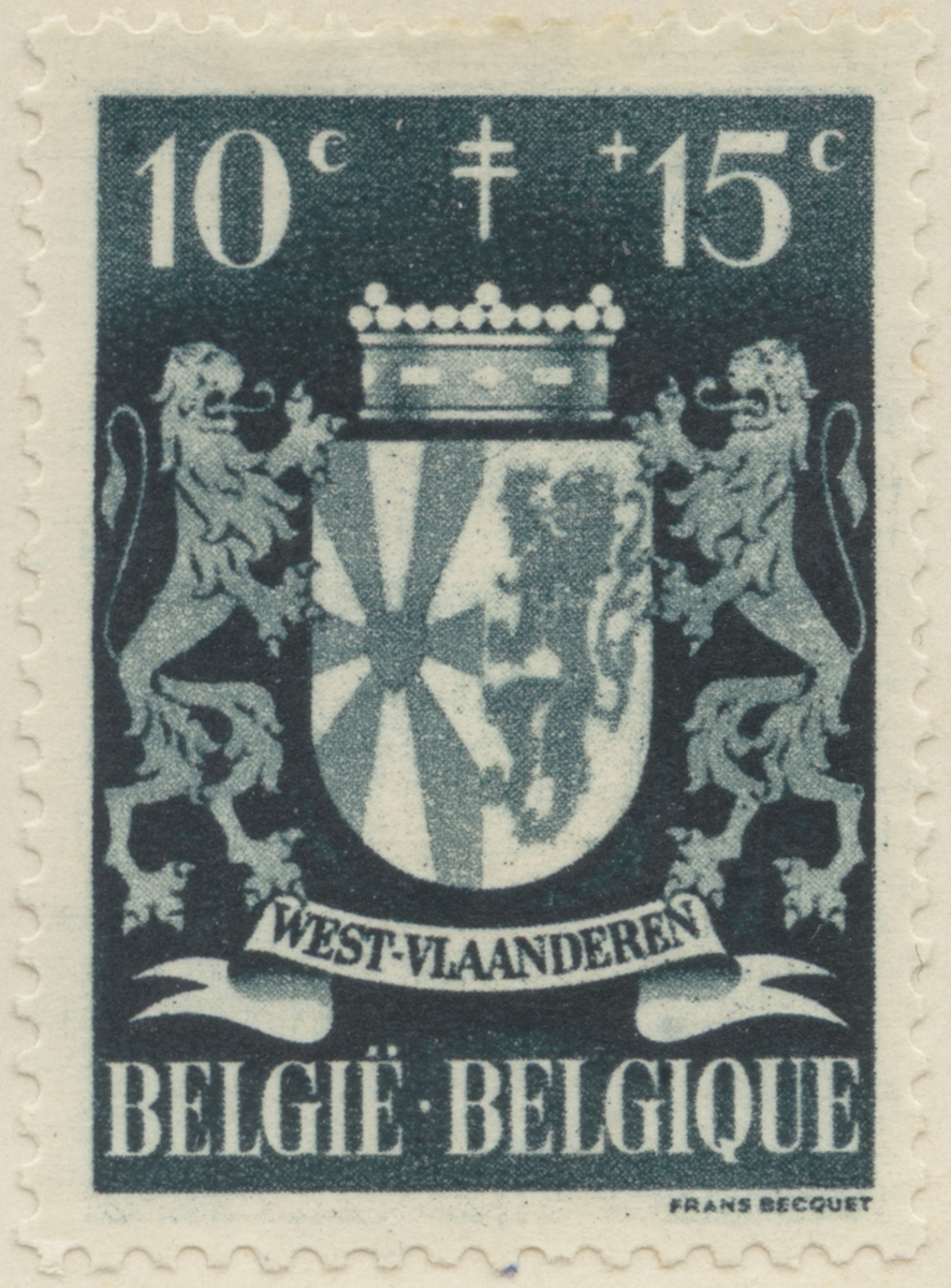 Frimärke från Belgien, 1945. Motiv av Väst Flanderns Vapen