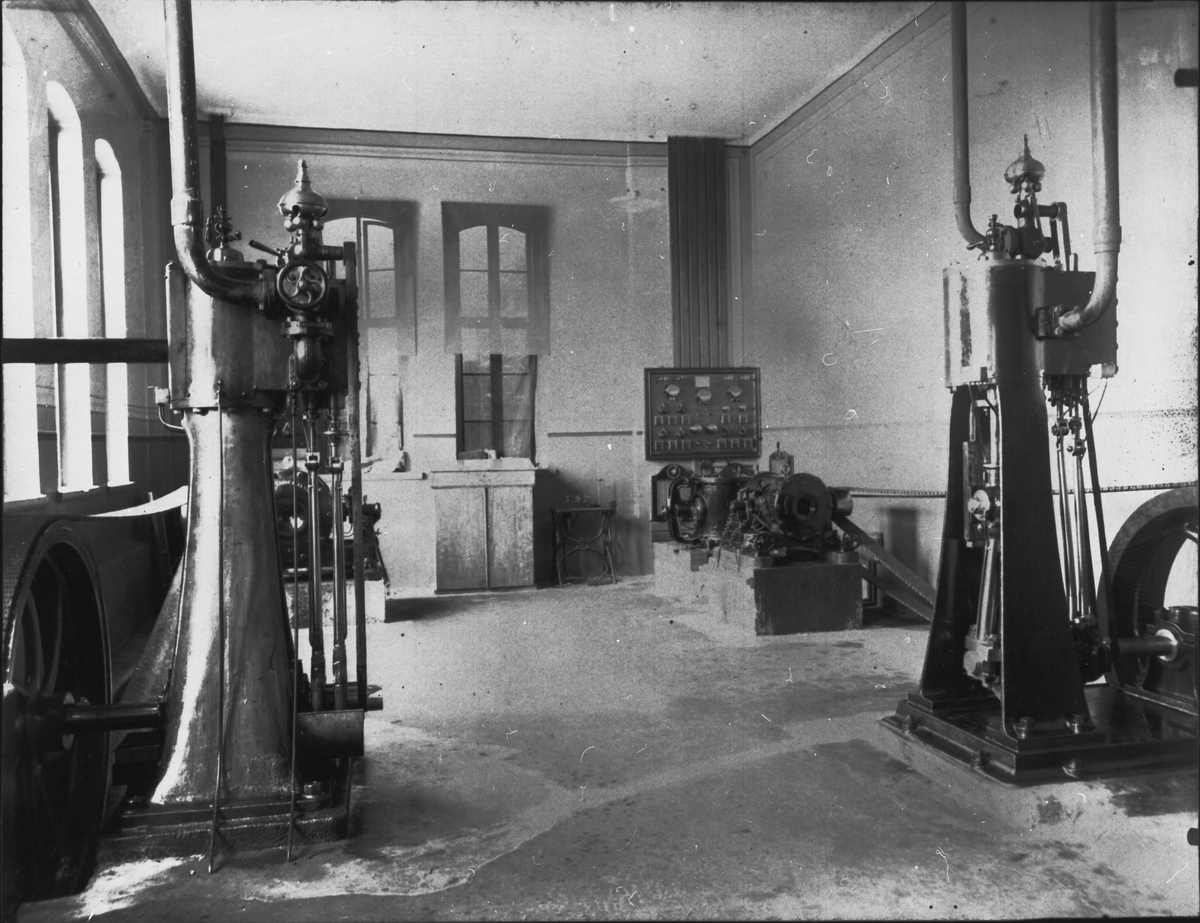 Interiör av Ala sågverks gamla maskinrum omkring 1892.