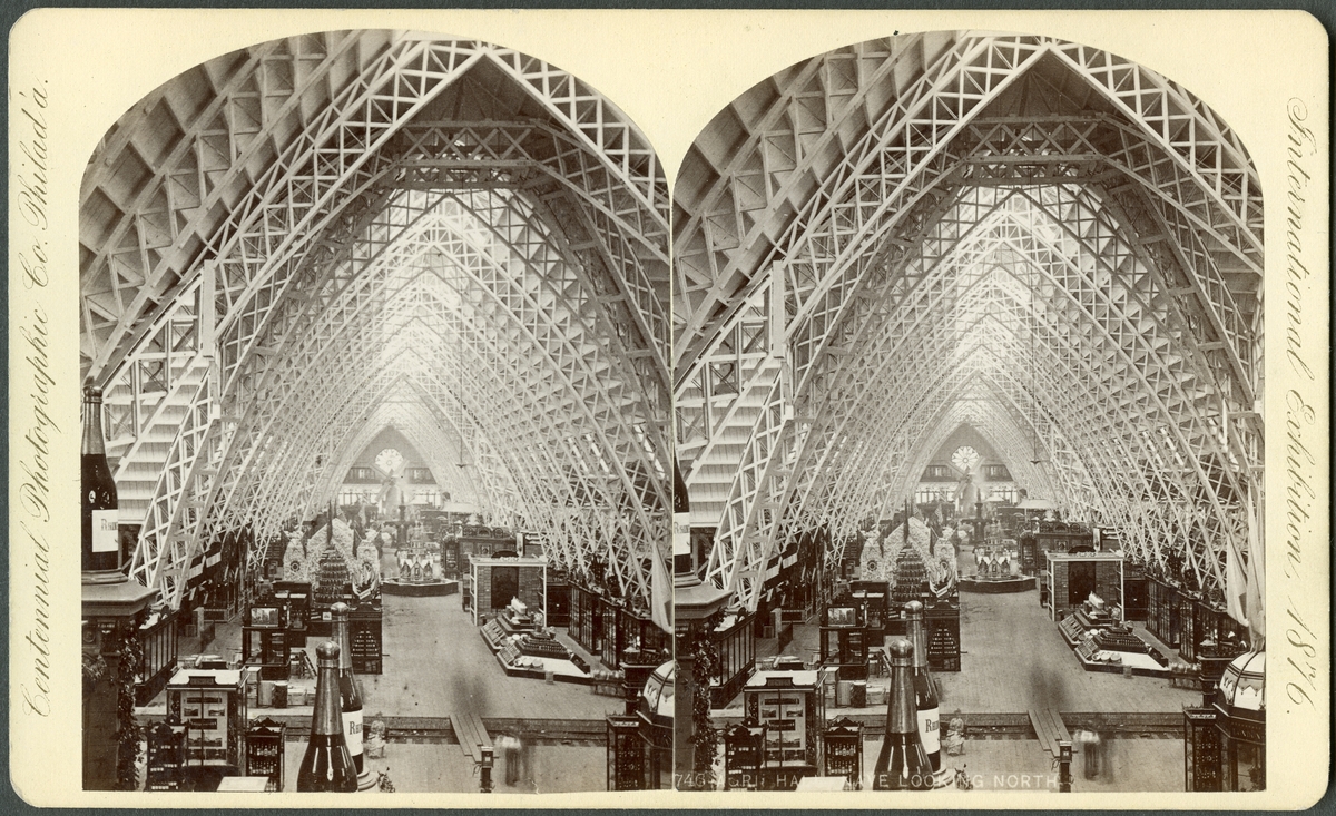 Stereobild, motiv från utställningshall vid Centennial International Exhibition 1876.