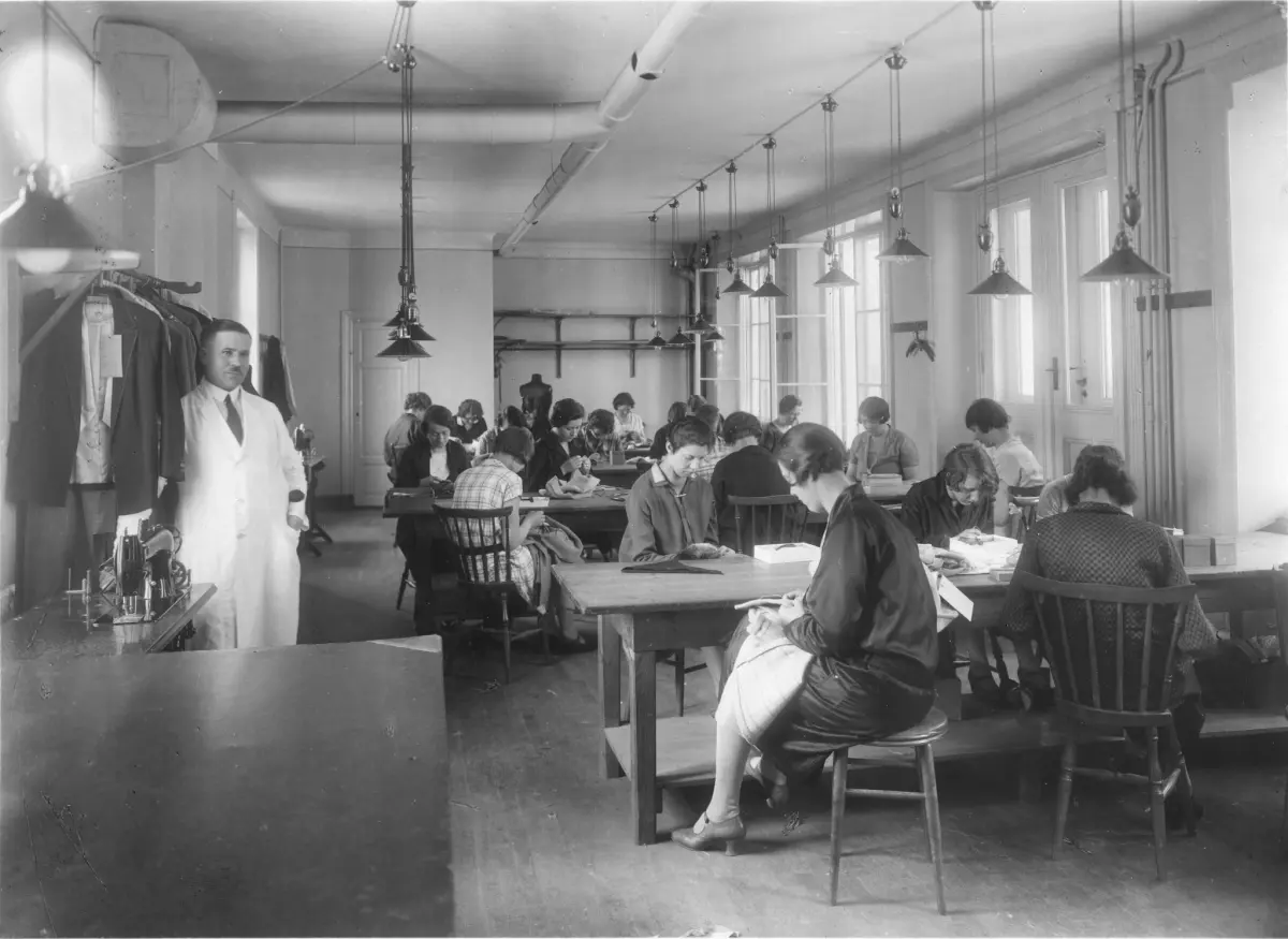 Arthur Ballin Kappfabrik på Regeringsgatan 33 i Stockholm. Fabrikssal 3 trappor.