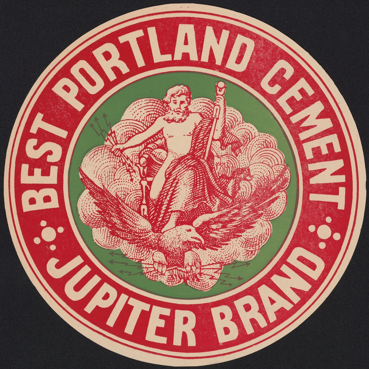 Fabriksmärke för cementpåsar. Jupiter Brand. Best Portland Cement.