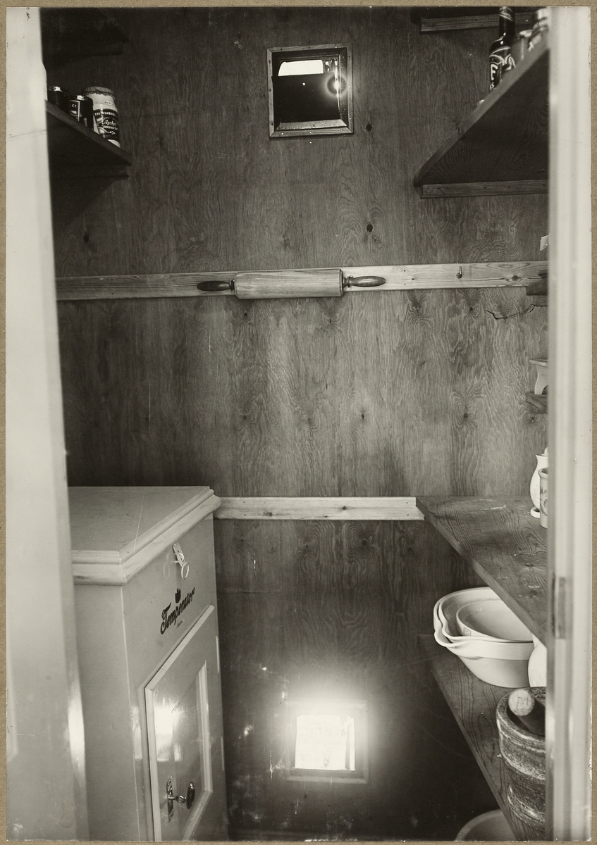 Bygge och Bo-utställningen på Lidingö 1925. Kök med förvaringsskåp ritat av arkitekt Sven Markelius.