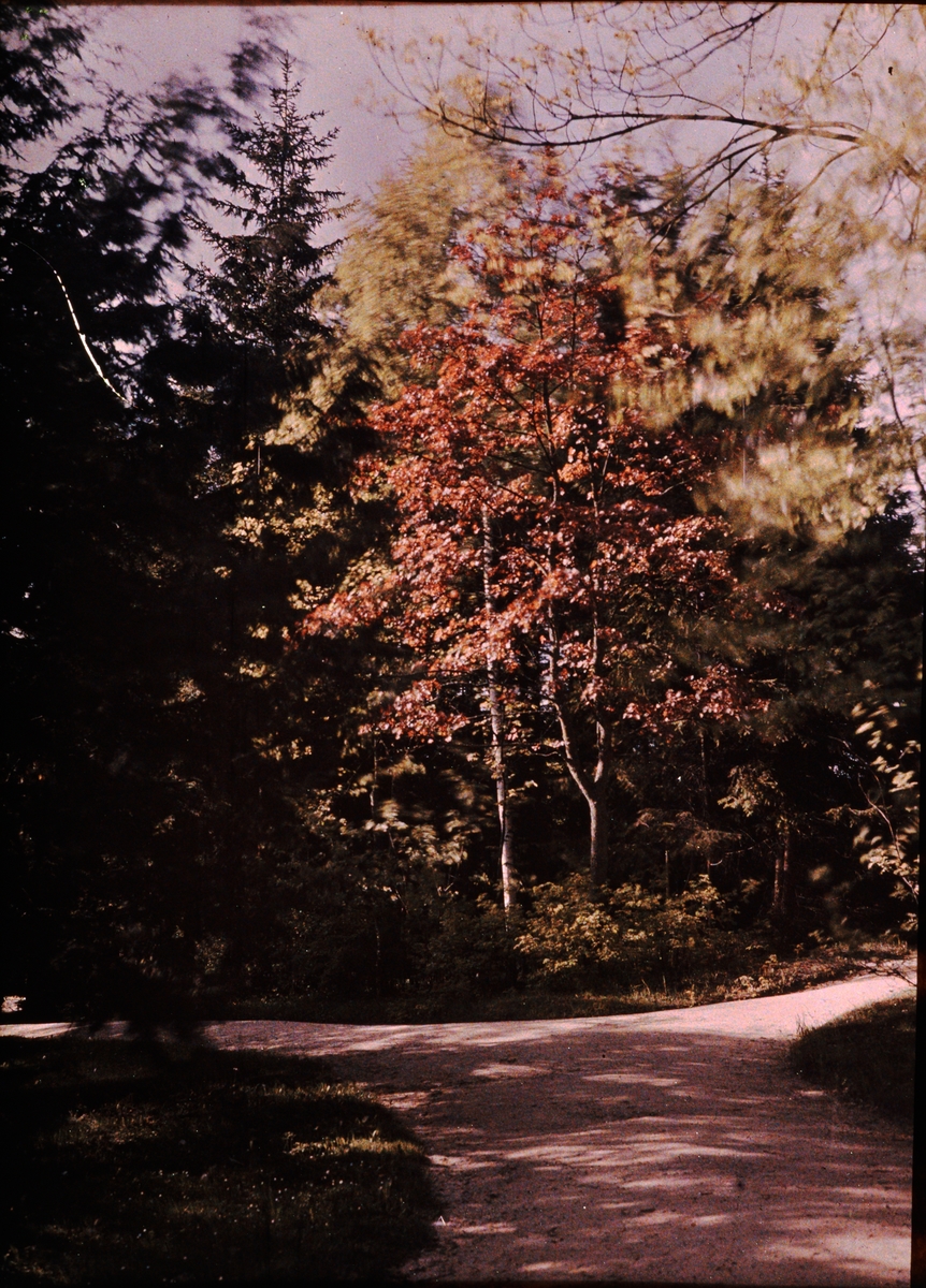Lumières-autokrom. Rödbok m m. i Dr Römpler. Görbersdorf parken. Fotograferad i april 1910.