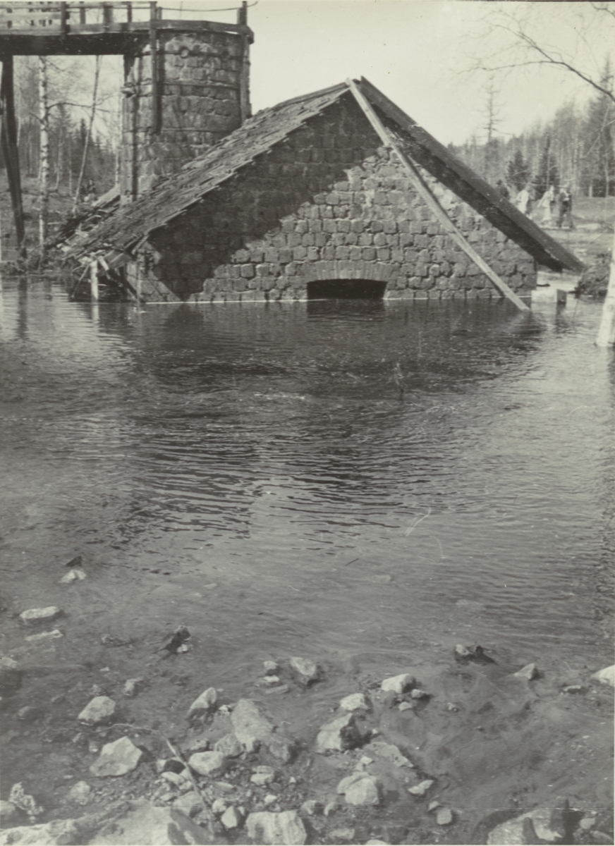 Billsjö masugn. Kalkugnen vid översvämningen 2 maj 1936.