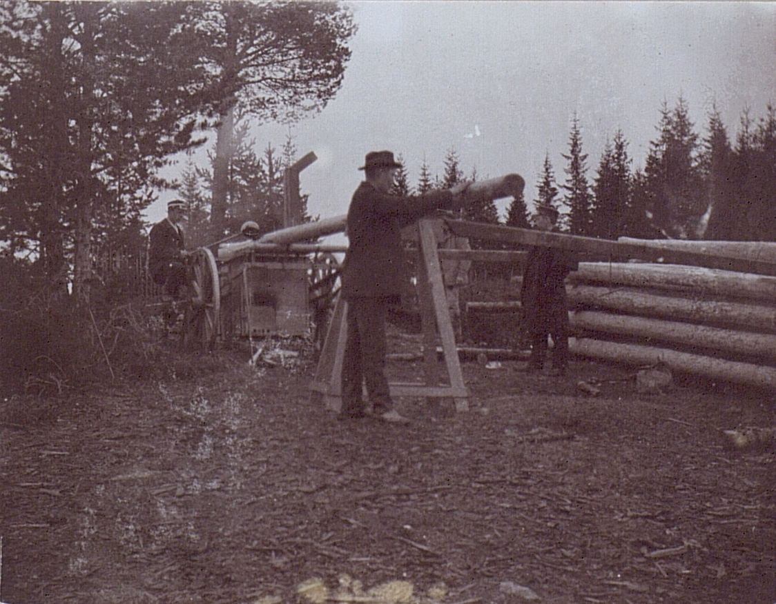 Sjätte distriktets telefonnät, omkr. 1900. (Sundsvall,Robertsfors och Luossaavara.) Barkning av stolpar.
