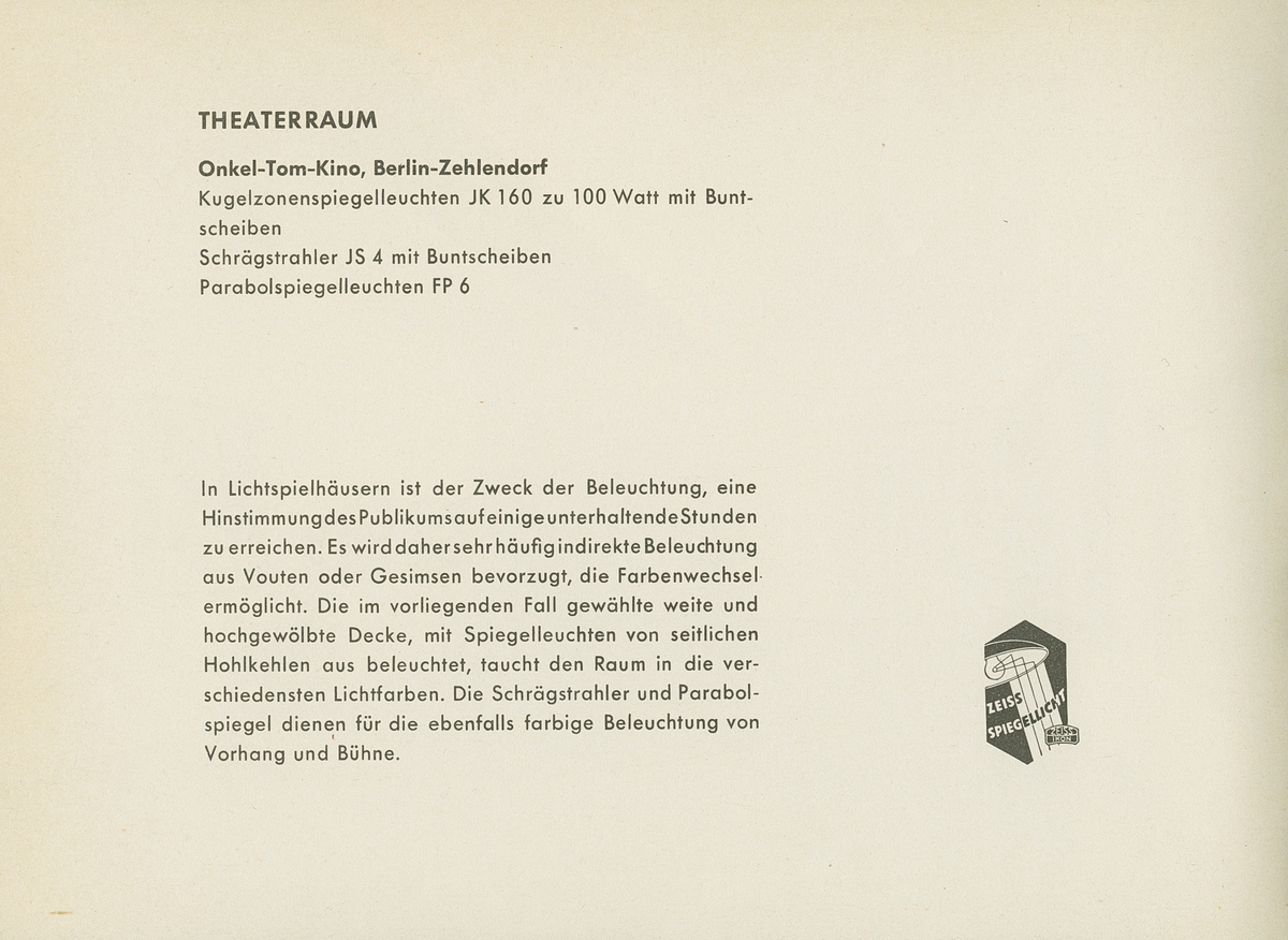 Bild ur boken "Zeiss Spiegellicht System Zeiss-Wiscott in der Architektur : eine Sammlung durchgeführter Beleuchtungsanlagen". Boken gavs ut av Berlin-Zehlendorf : Zeiss Ikon A.G., Goerzwerk, 1937.