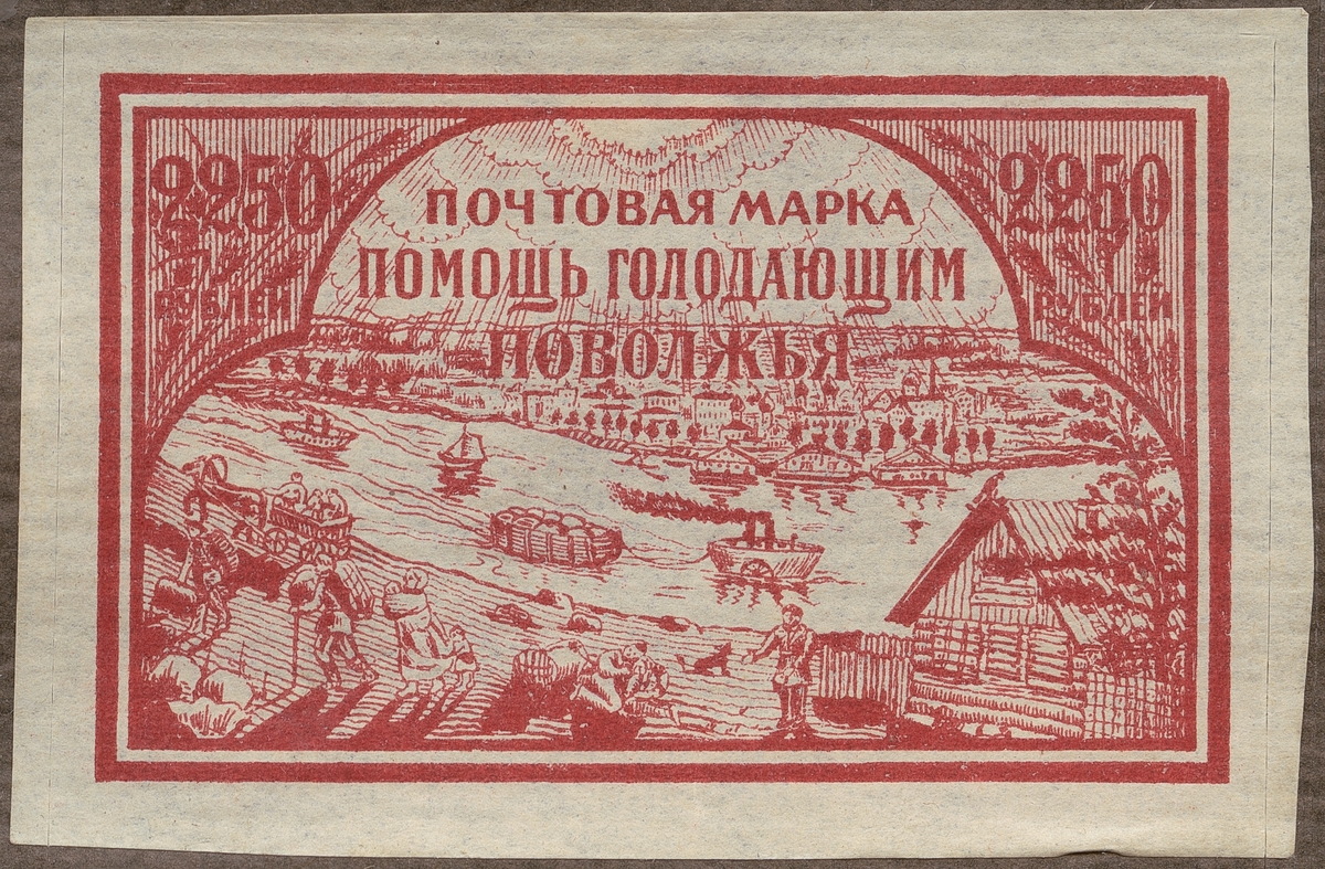Frimärke från Ryssland, 1922. Motiv av Gammal flodtrafik på Wolga Bogserbåten är en hjulångare