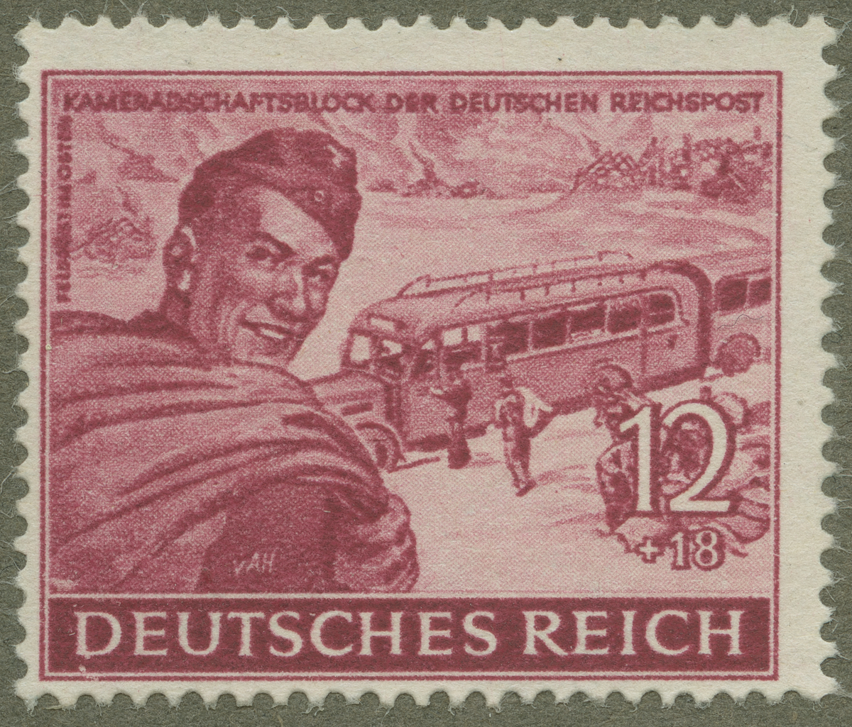 Frimärke (fältpostmärke för östfronten) ur Gösta Bodmans filatelistiska motivsamling, påbörjad 1950.