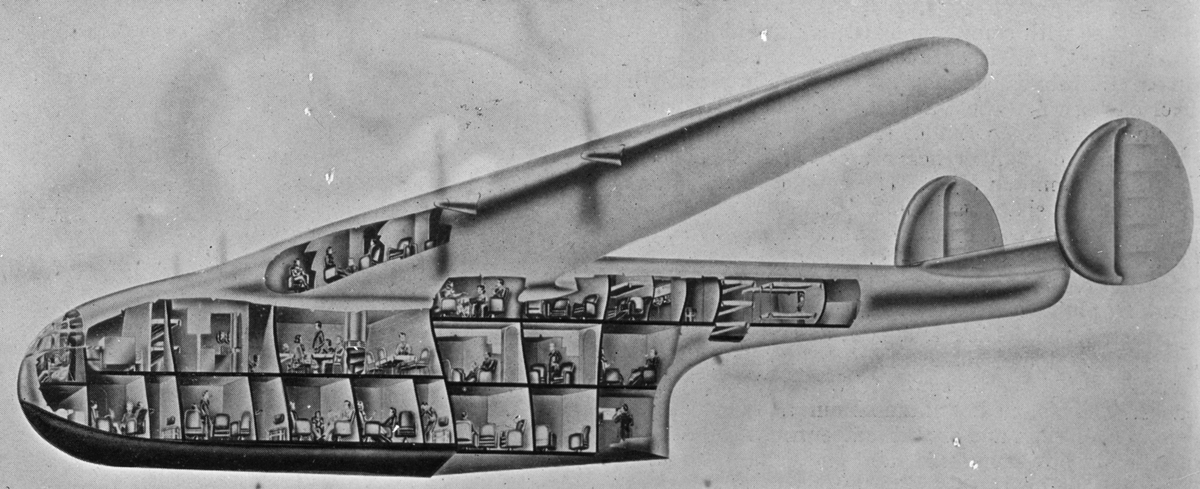 Skioptikonbild med motiv av genomskuret passagerarplan.