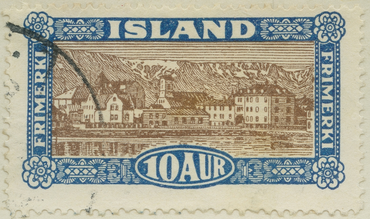 Frimärke från Iceland, 1925. Motiv av Staden Reykjavik från havet